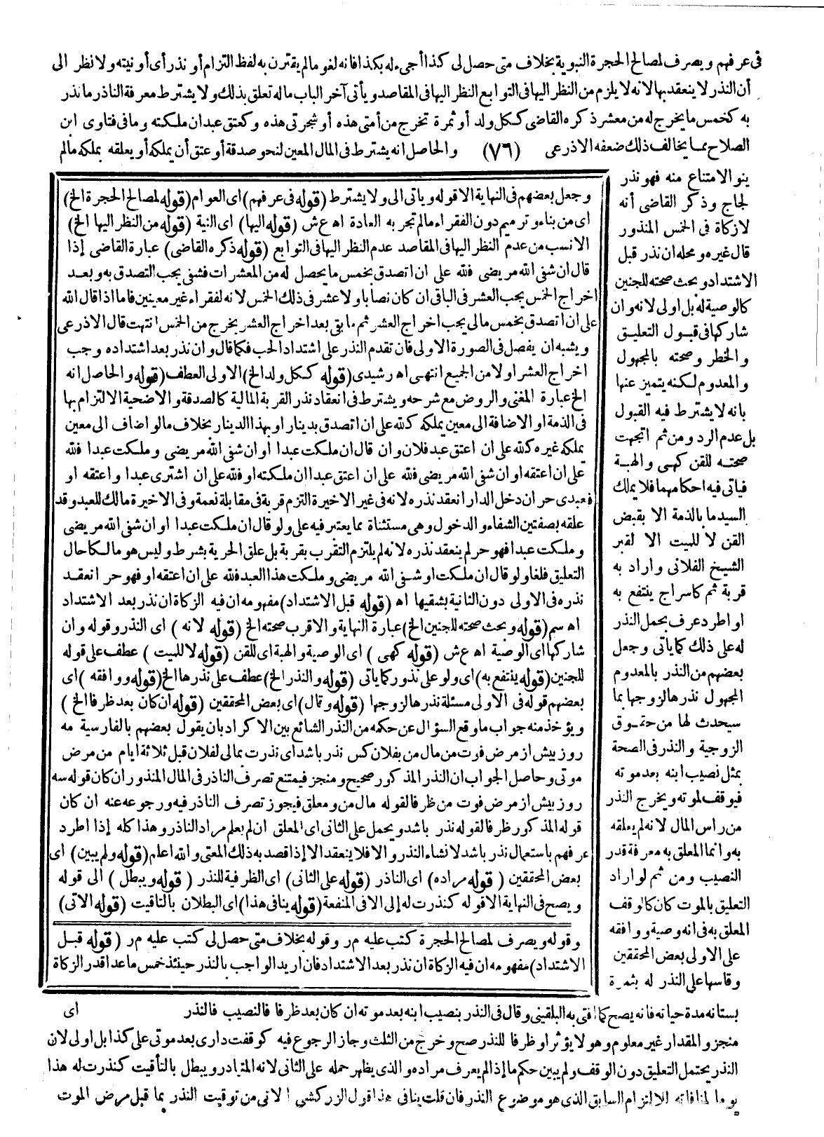 وَحَاصِلُ الْجَوَابِ أَنَّ النَّذْرَ الْمَذْكُورَ صَحِيحٌ وَمُنَجَّزٌ فَيَمْتَنِعُ تَصَرُّفُ النَّاذِرِ فِي الْمَالِ الْمَنْذُورِ إنْ كَانَ قَوْلُهُ: سه روز بيش أز مَرَض فوت مِنْ ظَرْفًا لِقَوْلِهِ مَال مِنْ، وَمُعَلَّقٌ فَيَجُوزُ تَصَرُّفُ النَّاذِرِ فِيهِ وَرُجُوعُهُ عَنْهُ إنْ كَانَ قَوْلُهُ الْمَذْكُورُ ظَرْفًا لِقَوْلِهِ نَذْر باشد وَيُحْمَلُ عَلَى الثَّانِي أَيْ: الْمُعَلَّقِ إنْ لَمْ يُعْلَمْ مُرَادُ النَّاذِرِ وَهَذَا كُلُّهُ إذَا اطَّرَدَ عُرْفُهُمْ بِاسْتِعْمَالِ نَذْر باشد لِإِنْشَاءِ النَّذْرِ وَإِلَّا فَلَا يَنْعَقِدُ إلَّا إذَا قُصِدَ بِهِ ذَلِكَ الْمَعْنَى وَاَللَّهُ أَعْلَمُ (قَوْلُهُ: وَلَمْ يُبَيِّنْ) أَيْ: بَعْضُ الْمُحَقِّقِينَ (قَوْلُهُ: مُرَادُهُ) أَيْ: النَّاذِرِ (قَوْلُهُ: عَلَى الثَّانِي) أَيْ: الظَّرْفِيَّةِ لِلنَّذْرِ