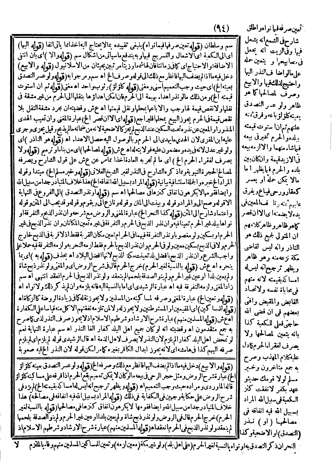 ـــــــــــــــــــــــــــــSقَوْلُهُ: وَإِلَّا بِيعَ) دَخَلَ فِيهِ مَا إذَا لَمْ يُضِفْ إلَيْهَا فَانْظُرْ مَعَ ذَلِكَ وَصَرْفُهُ إلَخْ (قَوْلُهُ: وَلَوْ عَسُرَ التَّصَدُّقُ بِعَيْنِهِ كَلُؤْلُؤٍ إلَخْ) عِبَارَةُ شَرْحِ الرَّوْضِ وَمِثْلُ حَجَرِ الرَّحَى فِي بَيْعِهِ مَا لَوْ كَانَ لَا يُمْكِنُ تَعْمِيمُ بُقَعِ الْحَرَمِ إذَا فَرَّقَهُ عَلَى مَسَاكِينِهِ كَلُؤْلُؤٍ قَالَهُ الْمَاوَرْدِيُّ وَمُرَادُهُ حَيْثُ وَجَبَ التَّعْمِيمُ. اهـ. (قَوْلُهُ: وَيَظْهَرُ تَرْجِيحُ أَنَّهُ لَيْسَ لَهُ إمْسَاكُهُ بِقِيمَتِهِ إلَخْ) لَمْ يَزِدْ فِي شَرْحِ الرَّوْضِ عَلَى حِكَايَةِ وَجْهَيْنِ فِي الْكِفَايَةِ فِي ذَلِكَ. (قَوْلُهُ: الْمُرَادُ بِسَبِيلِ اللَّهِ فِيهِ إنْفَاقُهُ فِي مَصَالِحِهِ) هَذَا خِلَافُ الْمُتَبَادِرِ جِدًّا مِنْ سَبِيلِ اللَّهِ وَأَيْضًا فَقَوْمُهَا لَا يَكْرَهُونَ إنْفَاقَ كَنْزِهَا فِي مَصَالِحِهَا.