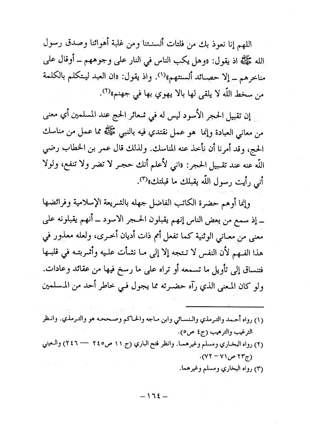 وإنما أوهم حضرة الكاتب الفاضل جهله بالشريعة الإسلامية وفرائضها -إذ سمع من بعض الناس إنهم يقبلون الحجر الأسود- أنهم يقبلونه على معنى من معاني الوثنية كما تفعل أمم ذات أديان أخرى، ولعله معذور في هذا الفهم لأن النفس لا تتجه إلا إلى ما نشأت عليه وأشربته في قلبها فتنساق إلى تأويل ما تسمعه أو تراه على ما رسخ فيها من عقائد وعادات. ولو كان المعنى الذي رآه حضرته مما يجول في خاطر أحد من المسلمين