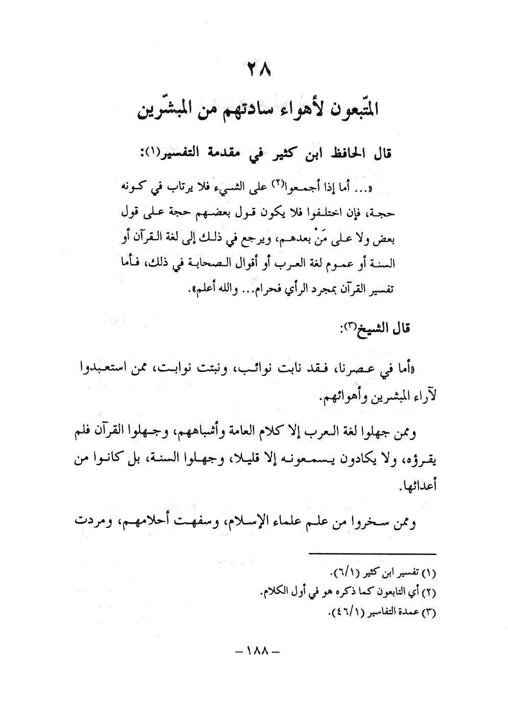 "أما في عصرنا، فقد نابت نوائب، ونبتت نوابت، ممن استعبدوا لآراء المبشرين وأهوائهم.