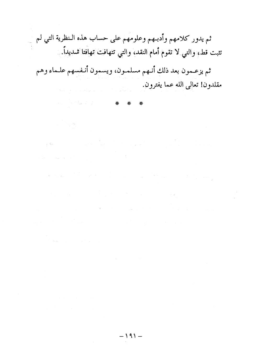 ثم يدور كلامهم وأدبهم وعلومهم على حساب هذه النظرية التي لم تثبت قط، والتي لا تقوم أمام النقد، والتي تتهافت تهافتا شديداً.