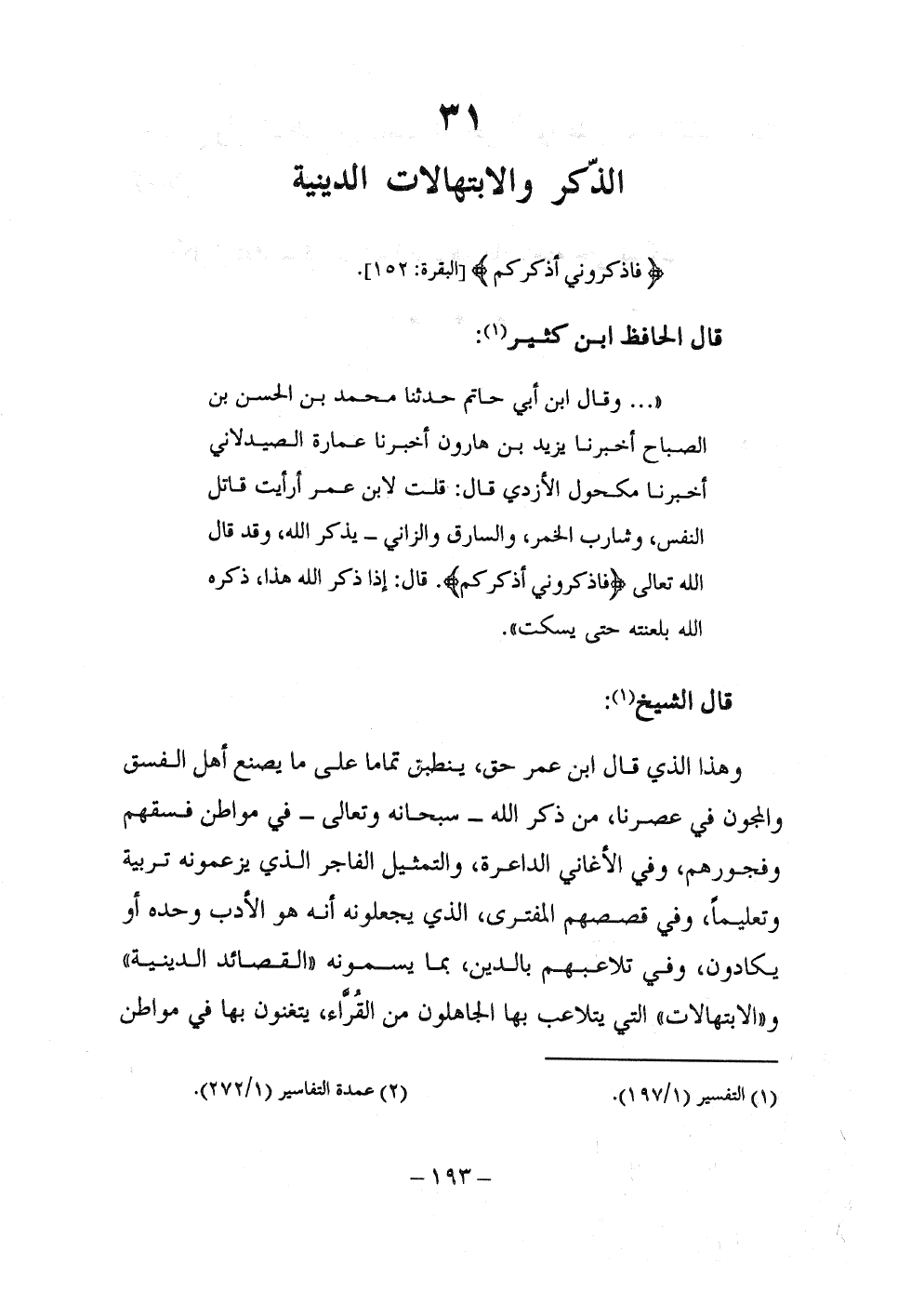 " ... وقال ابن أبي حاتم حدثنا محمد بن الحسن بن الصباح أخبرنا يزيد بن هارون أخبرنا عمارة الصيدلاني أخبرنا مكحول الأزدي قال: قلت لابن عمر أرأيت قاتل النفس، وشارب الخمر، والسارق والزاني -يذكر الله، وقد قال الله تعالى (فَاذْكُرُونِي أَذْكُرْكُمْ). قال: إذا ذكر الله هذا، ذكره الله بلعنته حتى يسكت".