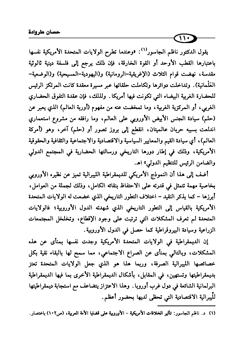 (¬1) د. ناظم الجاسور: تأثير الخلافات الأمريكية-الأوروپية على قضايا الأمة العربية، ص (102) باختصار.