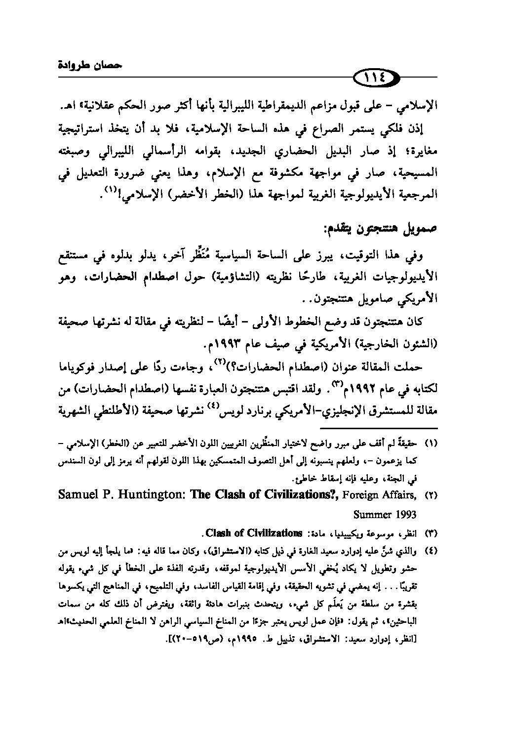 (¬3) انظر، موسوعة ويكيپيديا، مادة: Clash of Civilizations.