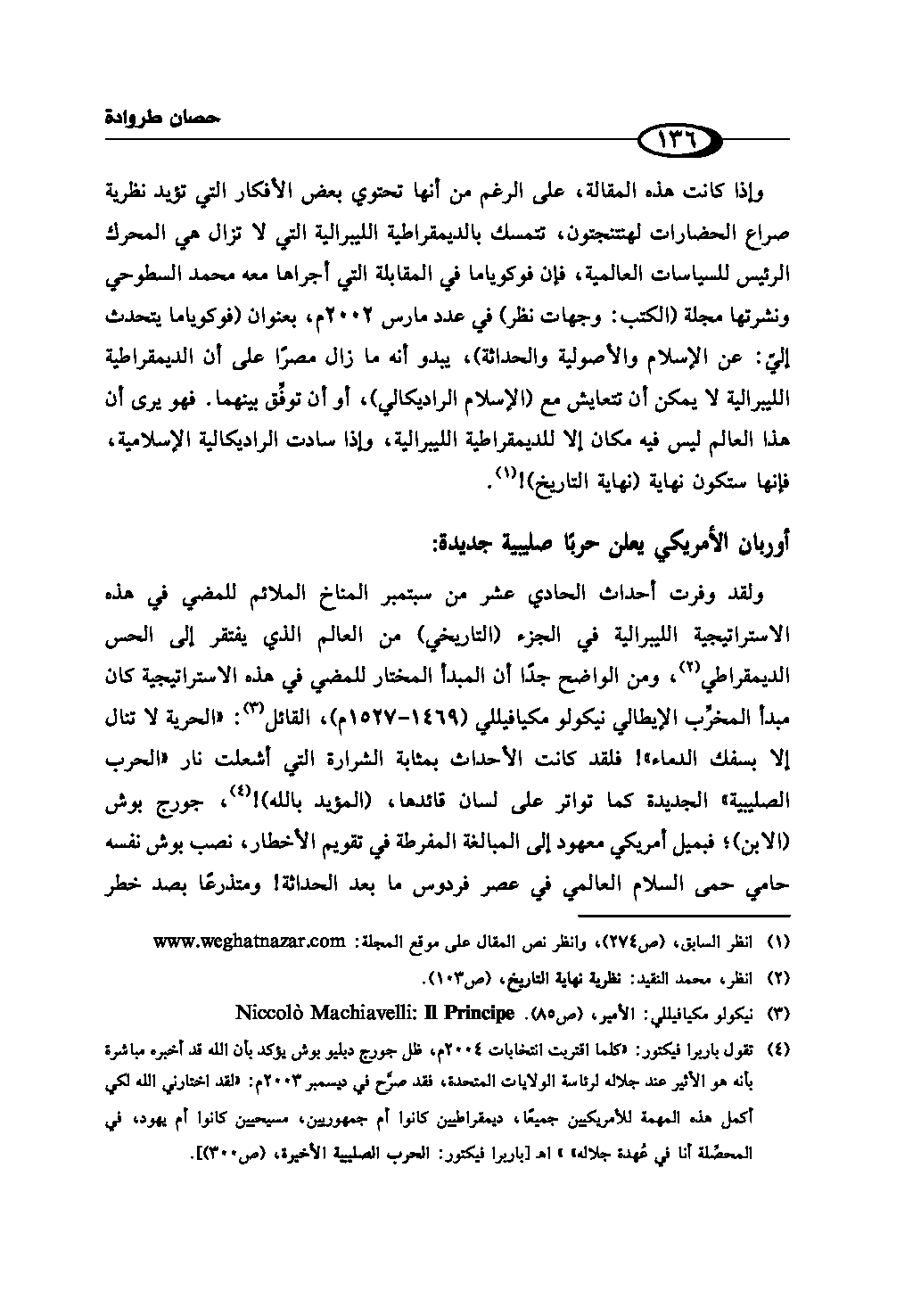 (¬1) انظر السابق، ص (274)، وانظر نص المقال على موقع المجلة: www.weghatnazar.com
