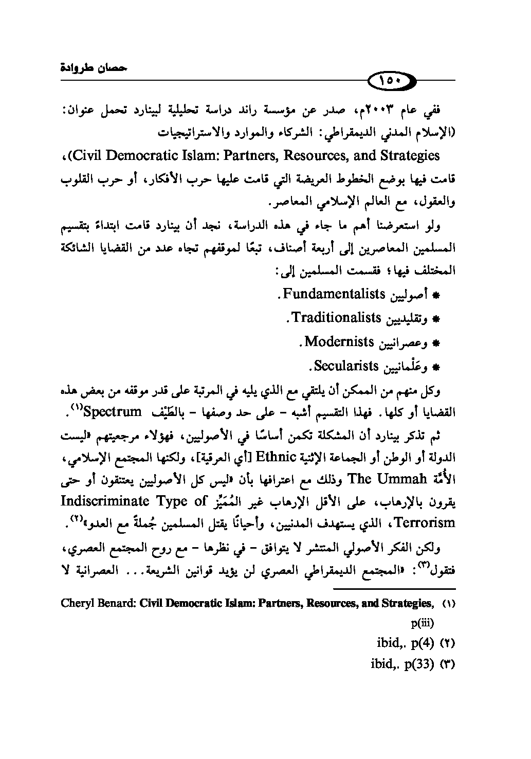 (¬1) Cheryl Benard: Civil Democratic Islam: Partners, Resources, and Strategies, p(iii)