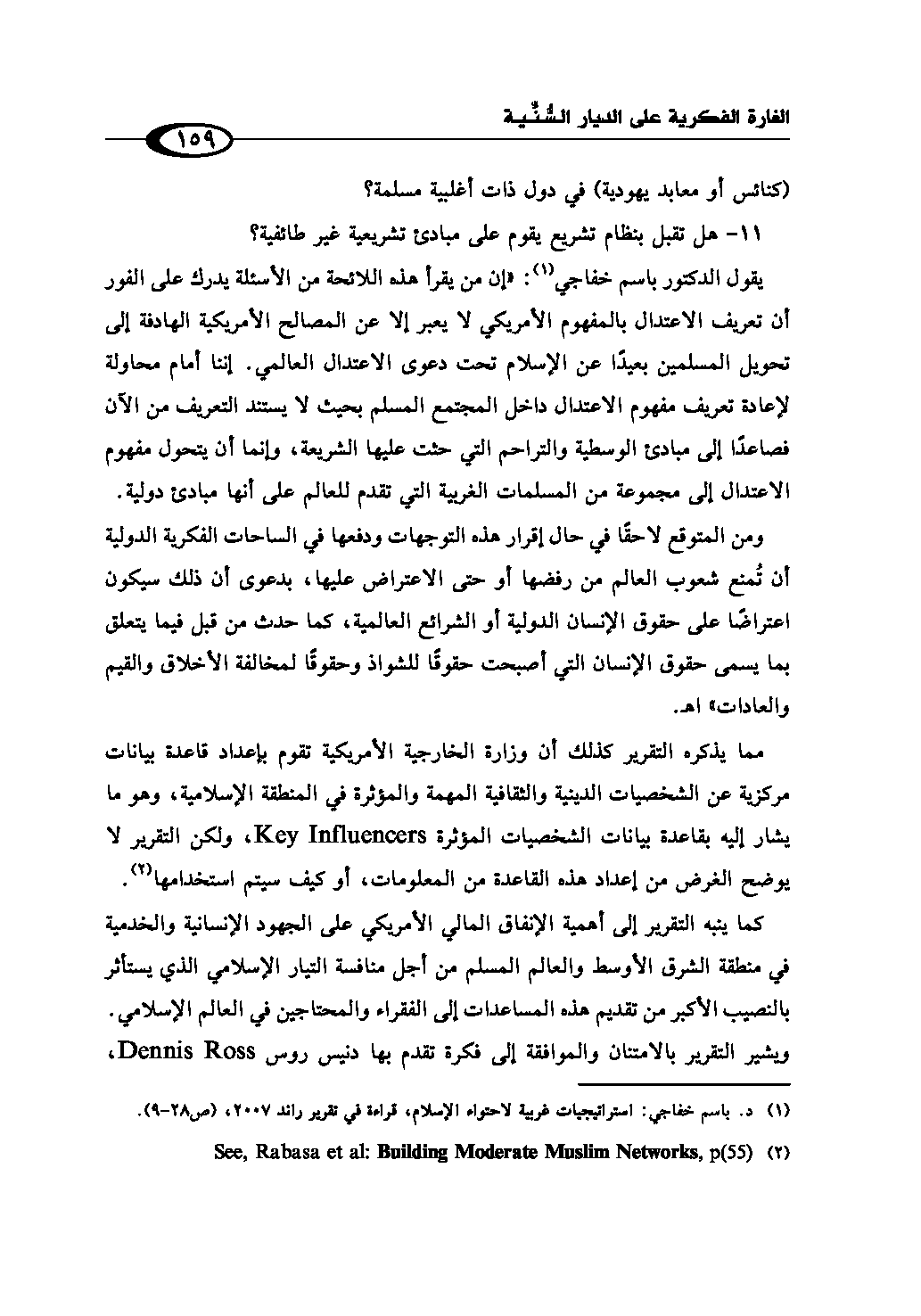 (¬1) د. باسم خفاجي: استراتيچيات غربية لاحتواء الإسلام، قراءة في تقرير راند 2007، ص (28 - 9).