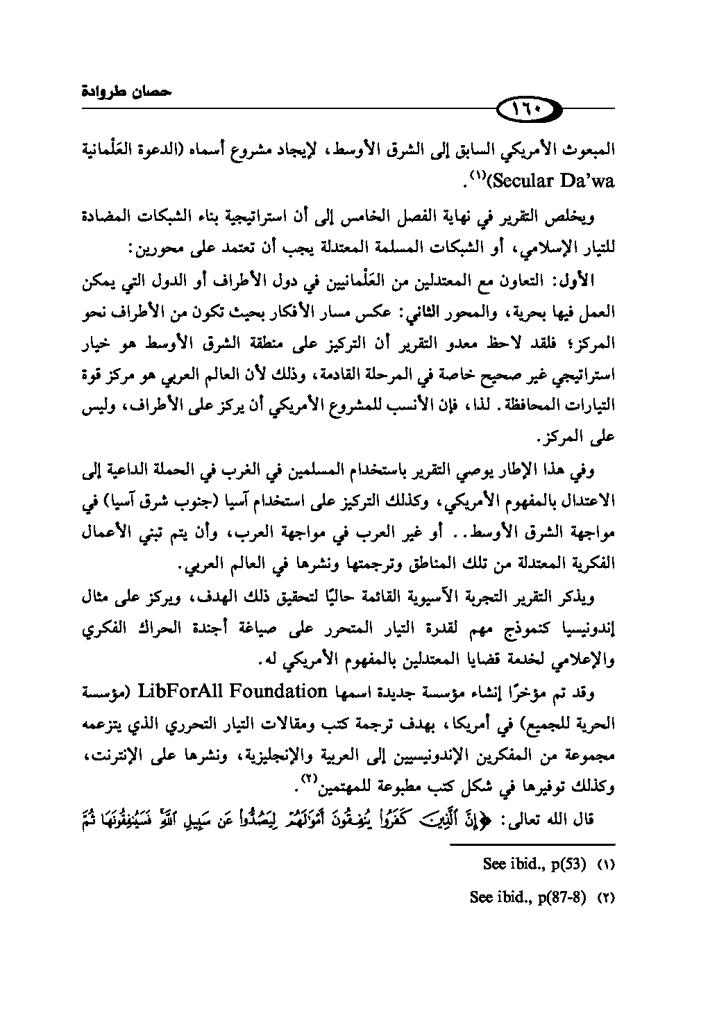 المبعوث الأمريكي السابق إلى الشرق الأوسط، لإيجاد مشروع أسماه (الدعوة العَلْمانية Secular Da'wa) (¬1) .