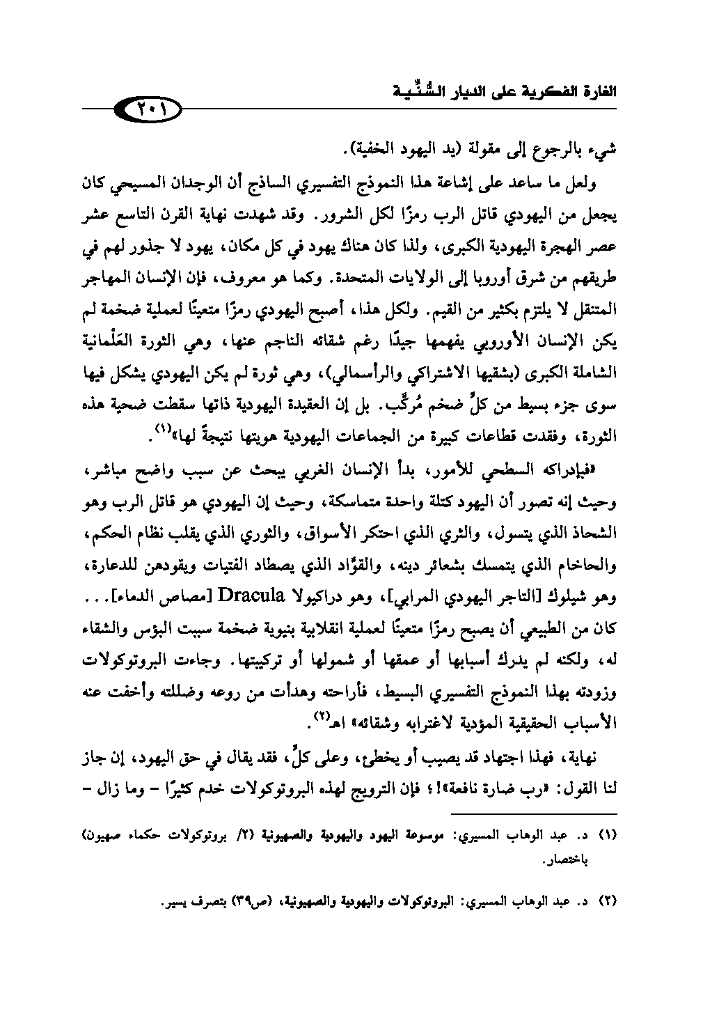 (¬1) د. عبد الوهاب المسيري: موسوعة اليهود واليهودية والصهيونية (2/ پروتوكولات حكماء صهيون) باختصار.