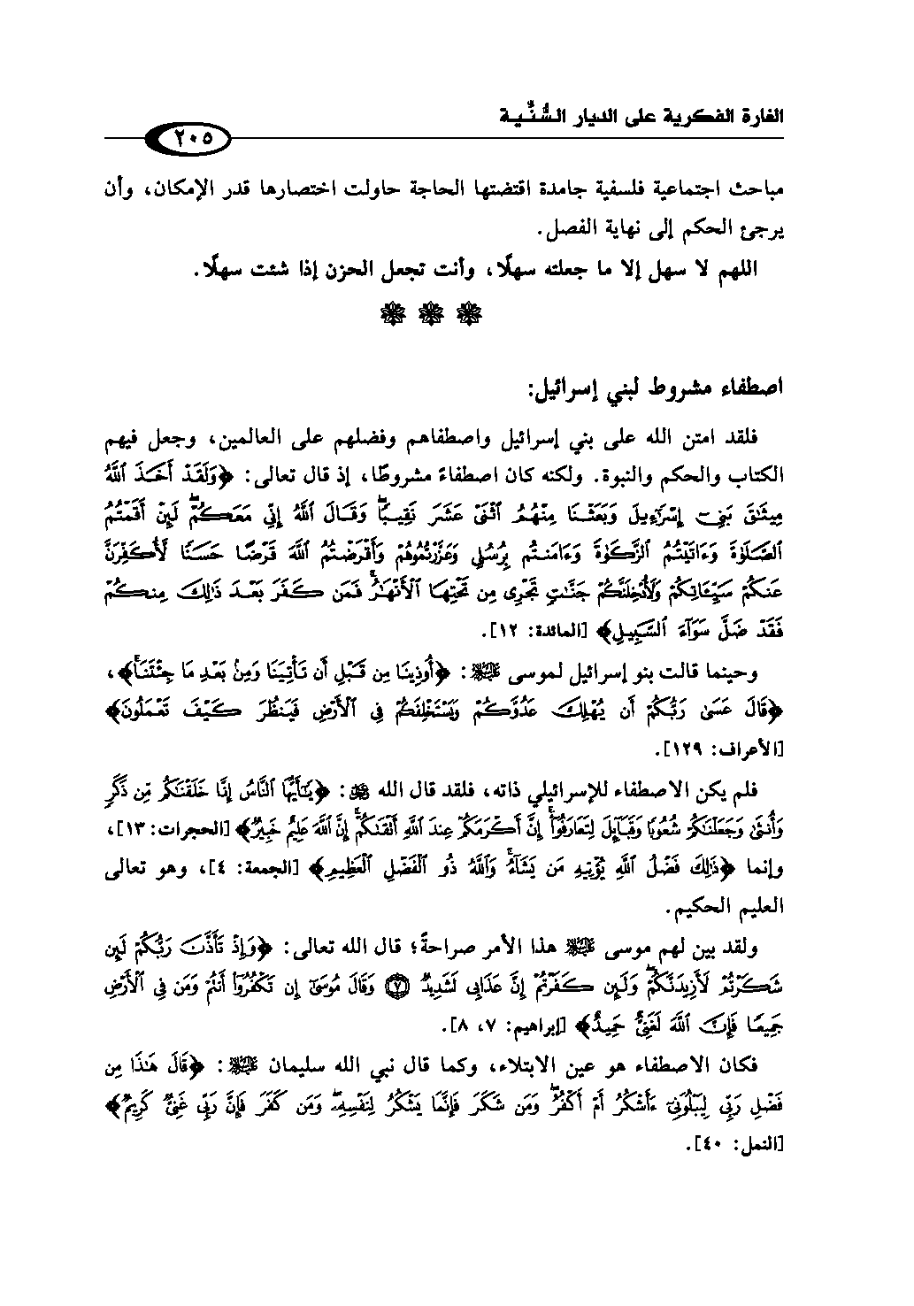 فلم يكن الاصطفاء للإسرائيلي ذاته، فلقد قال الله - عز وجل -: {يَا أَيُّهَا النَّاسُ إِنَّا خَلَقْنَاكُم مِّن ذَكَرٍ وَأُنثَى وَجَعَلْنَاكُمْ شُعُوبًا وَقَبَائِلَ لِتَعَارَفُوا إِنَّ أَكْرَمَكُمْ عِندَ اللَّهِ أَتْقَاكُمْ إِنَّ اللَّهَ عَلِيمٌ خَبِيرٌ} (¬3)، وإنما {ذَلِكَ فَضْلُ اللَّهِ يُؤْتِيهِ مَن يَشَاءُ وَاللَّهُ ذُو الْفَضْلِ الْعَظِيمِ} (¬4)، وهو تعالى العليم الحكيم.