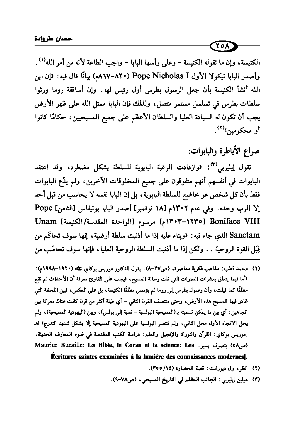 (¬1) محمد قطب: مذاهب فكرية معاصرة، ص (27 - 8). يقول الدكتور موريس بوكاي رحمه الله (1920 - 1998م): «أما فيما يتعلق بعشرات السنوات التي تلت رسالة المسيح، فيجب على القارئ معرفة أن الأحداث لم تقع مطلقًا كما قيلت، وأن وصول بطرس إلى روما لم يؤسس مطلقًا الكنيسة، بل على العكس، فبين اللحظة التي غادر فيها المسيح هذه الأرض، وحتى منتصف القرن الثاني - أي طيلة أكثر من قرن كانت هناك معركة بين اتجاهين: أي بين ما يمكن تسميته بـ (المسيحية الپولسية - نسبة إلى پولس)، وبين (اليهودية المسيحية)، ولم يحل الاتجاه الأول محل الثاني، ولم تنتصر الپولسية على اليهودية المسيحية إلا بشكل شديد التدرج» اهـ[موريس بوكاي: القرآن والتوراة والإنجيل والعلم: دراسة الكتب المقدسة في ضوء المعارف الحديثة، ص (58) بتصرف يسير. Maurice Bucaille: La Bible, le Coran el la science: Les Ecritures saintes examinées à la lumière des connaissances modernes].