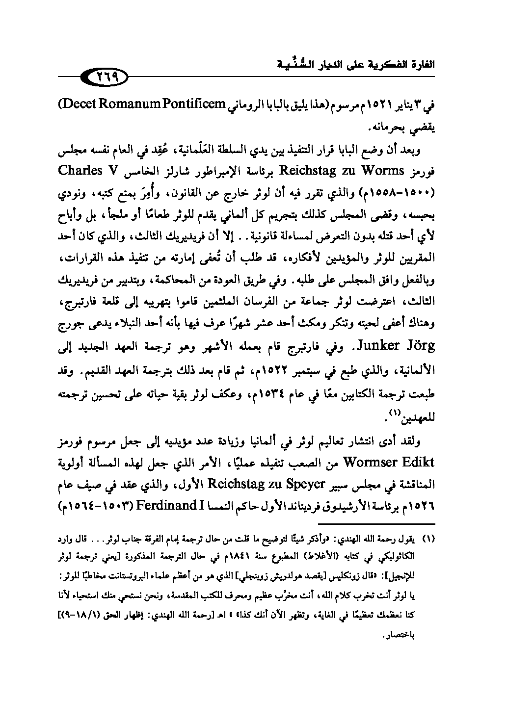 (¬1) يقول رحمة الله الهندي: «وأذكر شيئًا لتوضيح ما قلت من حال ترجمة إمام الفرقة جناب لوثر ... قال وارد الكاثوليكي في كتابه (الأغلاط) المطبوع سنة 1841م في حال الترجمة المذكورة [يعني ترجمة لوثر للإنجيل]: "قال زونكليس [يقصد هولدريش زوينجلي] الذي هو من أعظم علماء الپروتستانت مخاطبًا للوثر: يا لوثر أنت تخرب كلام الله، أنت مخرِّب عظيم ومحرف للكتب المقدسة، ونحن نستحي منك استحياء لأنا كنا نعظمك تعظيمًا في الغاية، وتظهر الآن أنك كذا"» اهـ[رحمة الله الهندي: إظهار الحق (1/ 18 - 9)] باختصار.