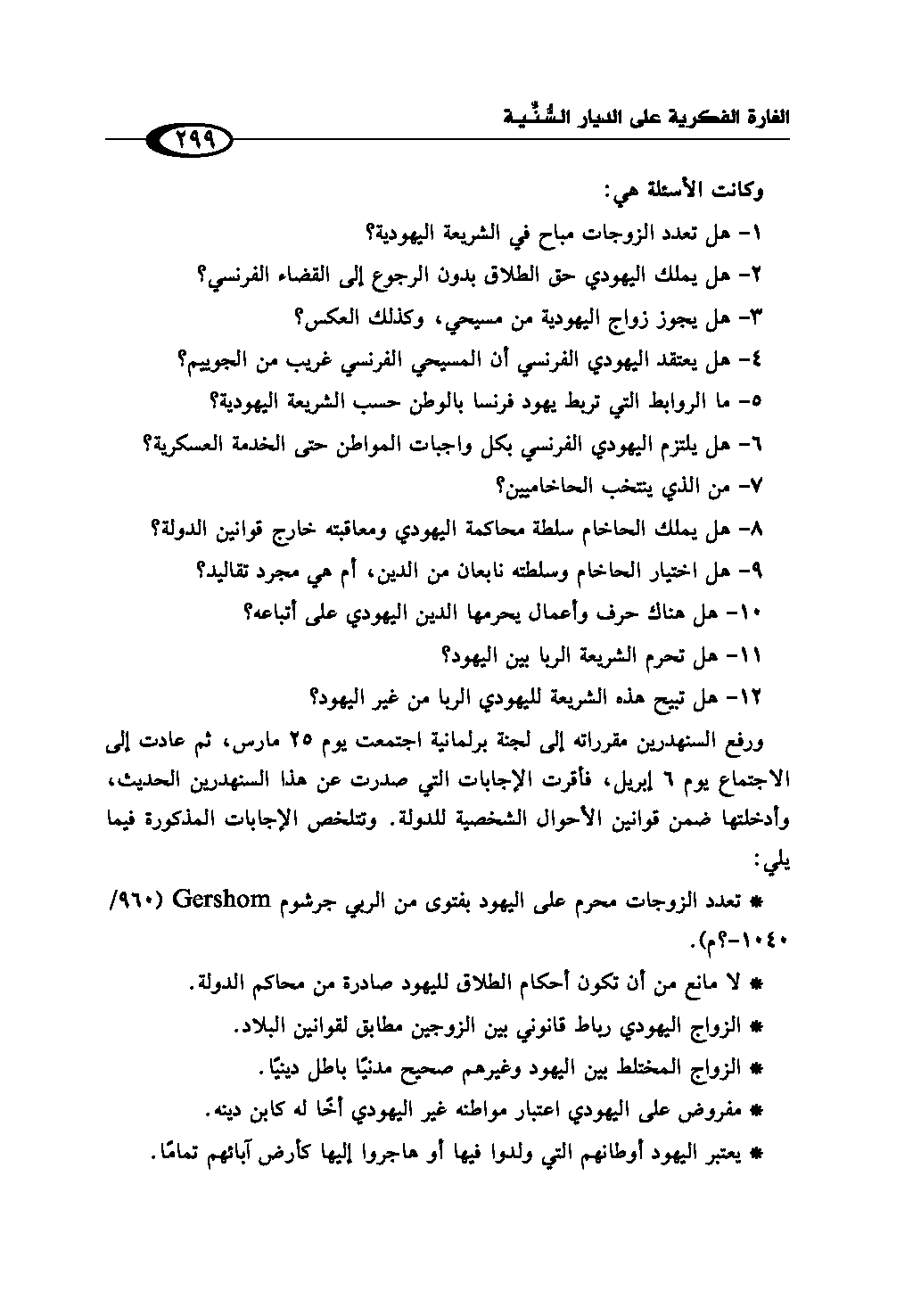 - تعدد الزوجات محرم على اليهود بفتوى من الربي چرشوم Gershom (960/ 1040 - ؟ م).