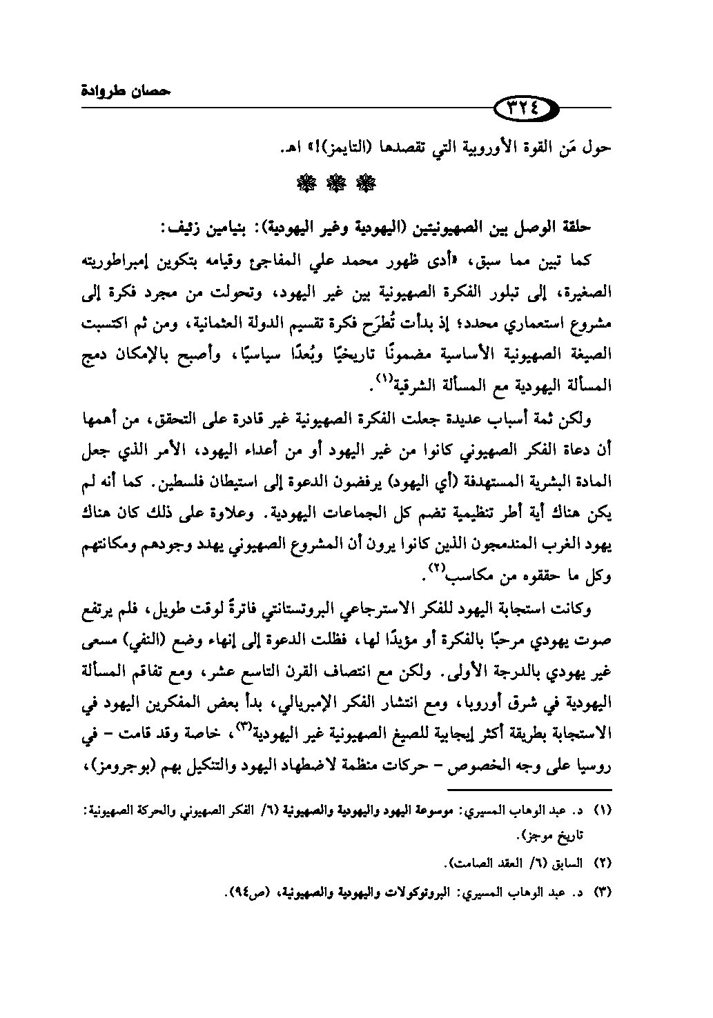 (¬3) د. عبد الوهاب المسيري: الپروتوكولات واليهودية والصهيونية، ص (94).