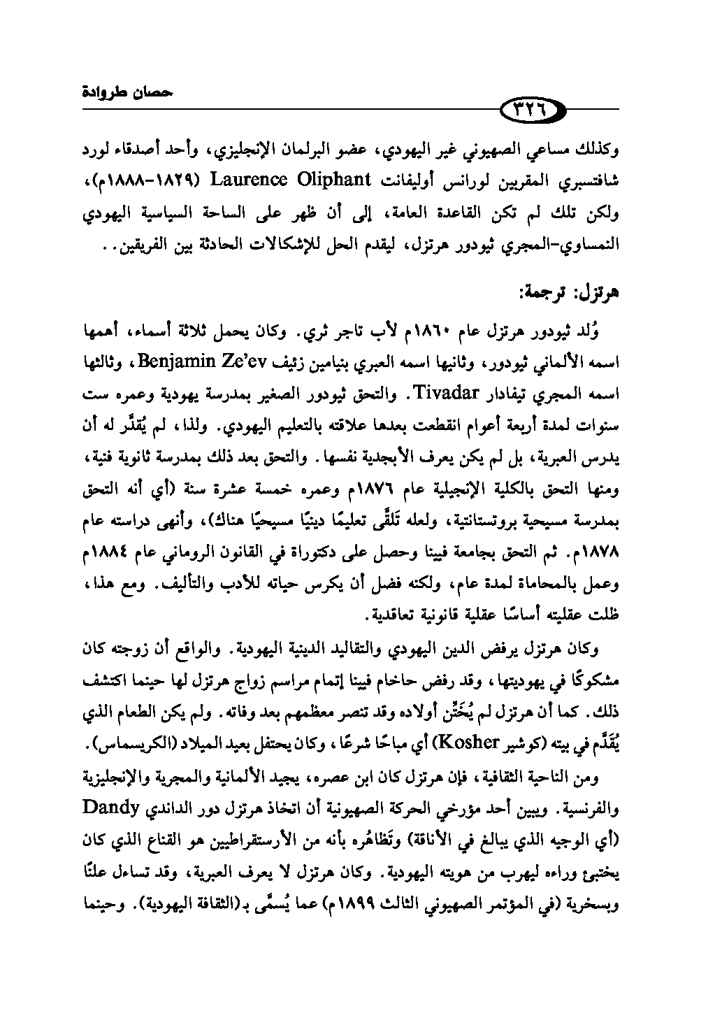 وكذلك مساعي الصهيوني غير اليهودي، عضو الپرلمان الإنجليزي، وأحد أصدقاء لورد شافتسبري المقربين لورانس أوليفانت Laurence Oliphant (1829 - 1888 م)، ولكن تلك لم تكن القاعدة العامة، إلى أن ظهر على الساحة السياسية اليهودي النمساوي-المجري، ثيودور هرتزل، ليقدم الحل للإشكالات الحادثة بين الفريقين ..