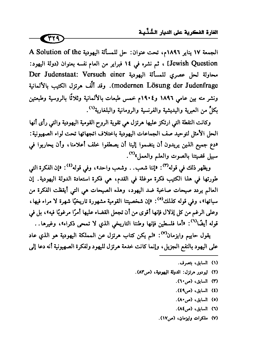 (¬2) ثيودور هرتزل: الدولة اليهودية، ص (83).