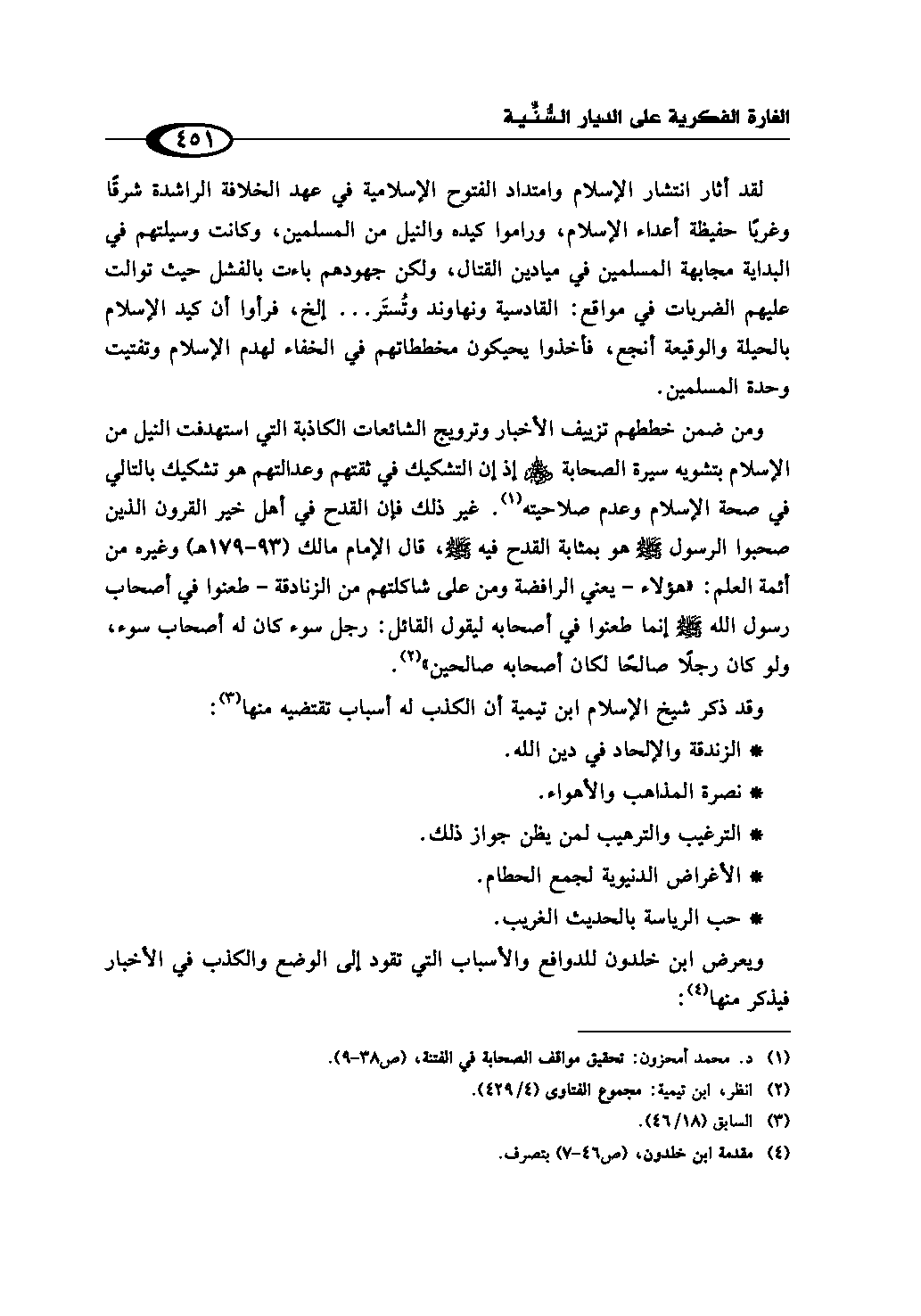 ويعرض ابن خلدون للدوافع والأسباب التي تقود إلى الوضع والكذب في الأخبار فيذكر منها (¬4):
