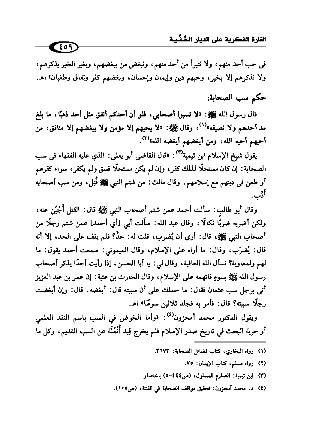 (¬4) د. محمد أمحزون: تحقيق مواقف الصحابة في الفتنة، ص (105).