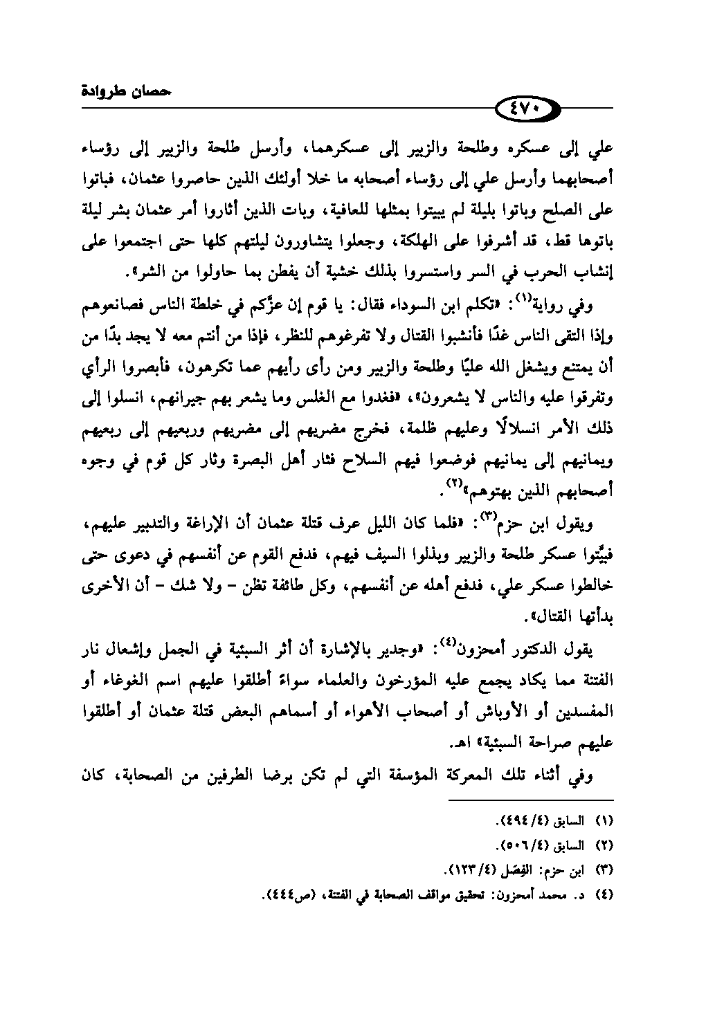 (¬4) د. محمد أمحزون: تحقيق مواقف الصحابة في الفتنة، ص (444).