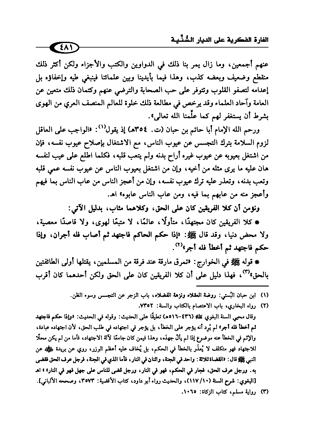 (¬1) ابن حبان البُستي: روضة العقلاء ونزهة الفضلاء، باب الزجر عن التجسس وسوء الظن.