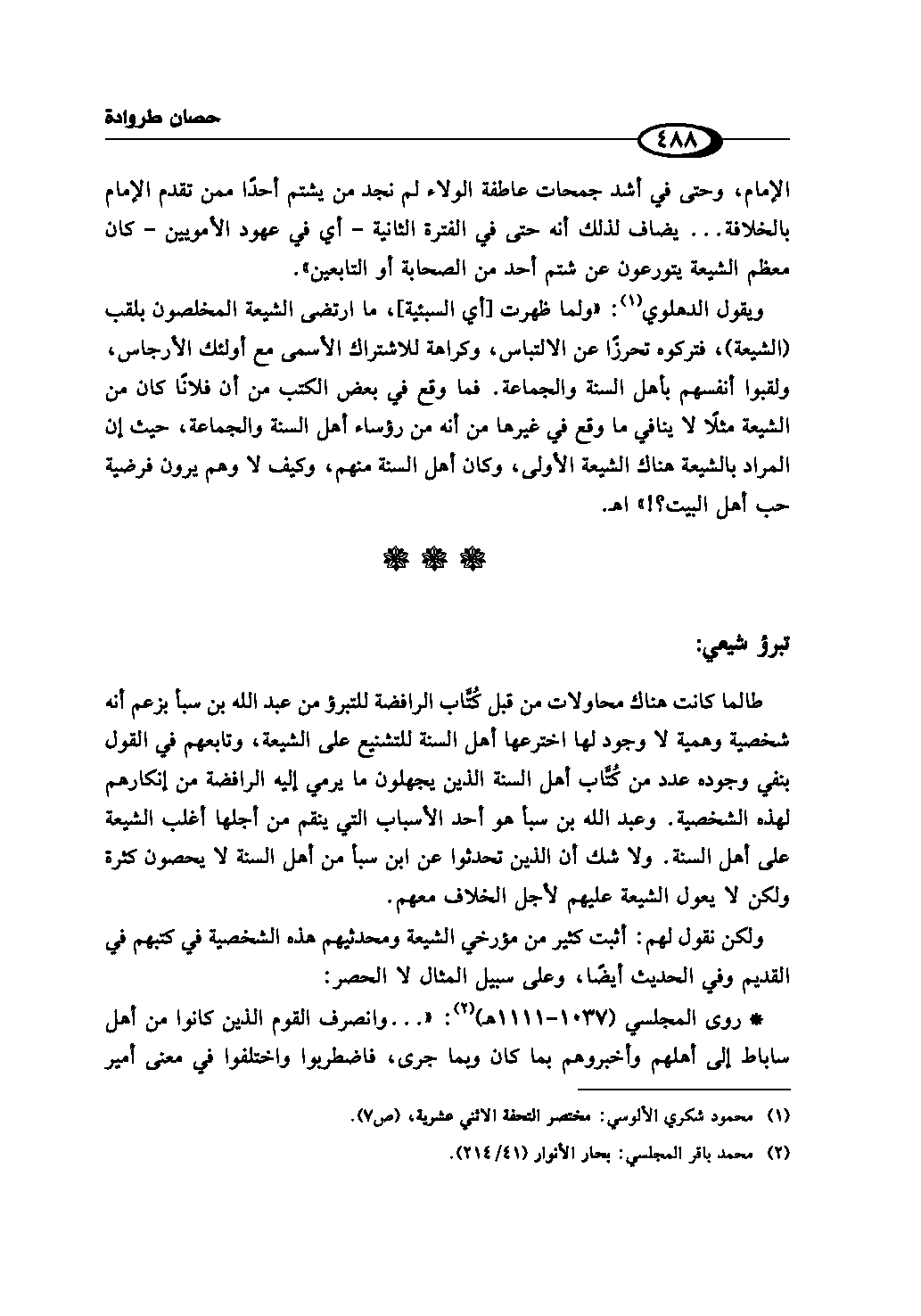 (¬1) محمود شكري الألوسي: مختصر التحفة الاثني عشرية، ص (7).