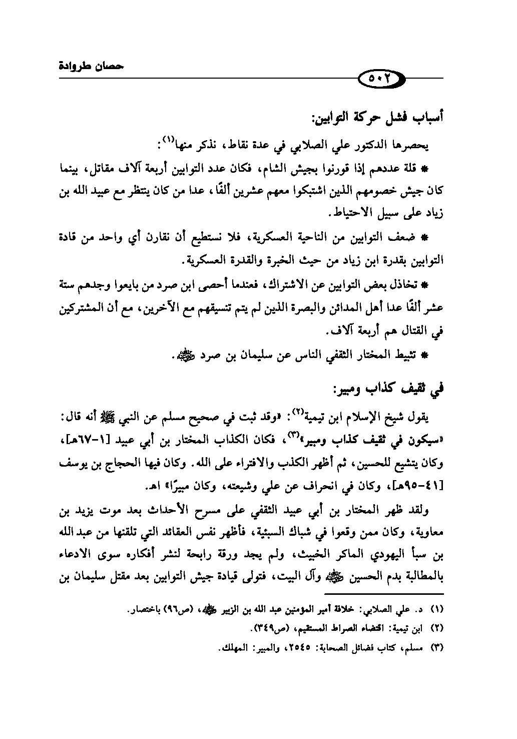 (¬1) د. علي الصلابي: خلافة أمير المؤمنين عبد الله بن الزبير - رضي الله عنه -، ص (96) باختصار.