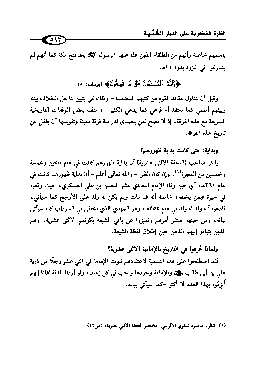 (¬2) انظر، محمود شكري الألوسي: مختصر التحفة الاثني عشرية، ص (22).