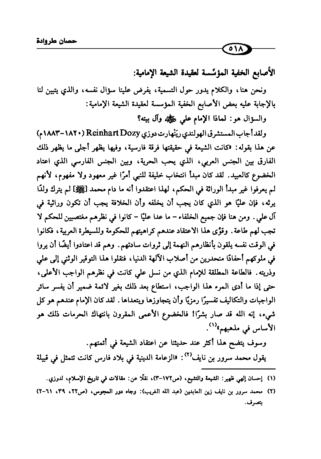 (¬1) إحسان إلهي ظهير: الشيعة والتشيع، ص (172 - 3)، نقلًا عن: مقالات في تاريخ الإسلام، لدوزي.
