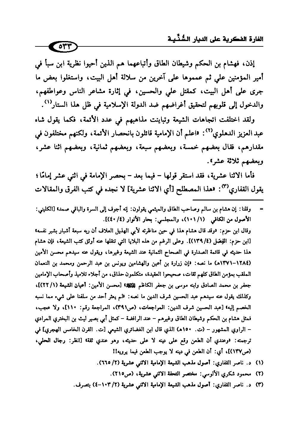 (¬3) د. ناصر القفاري: أصول مذهب الشيعة الإمامية الاثني عشرية (2/ 103 - 4) بتصرف.