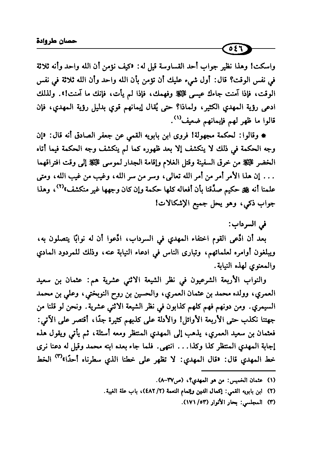 (¬2) ابن بابويه القمي: إكمال الدين وإتمام النعمة (2/ 482)، باب علة الغيبة.