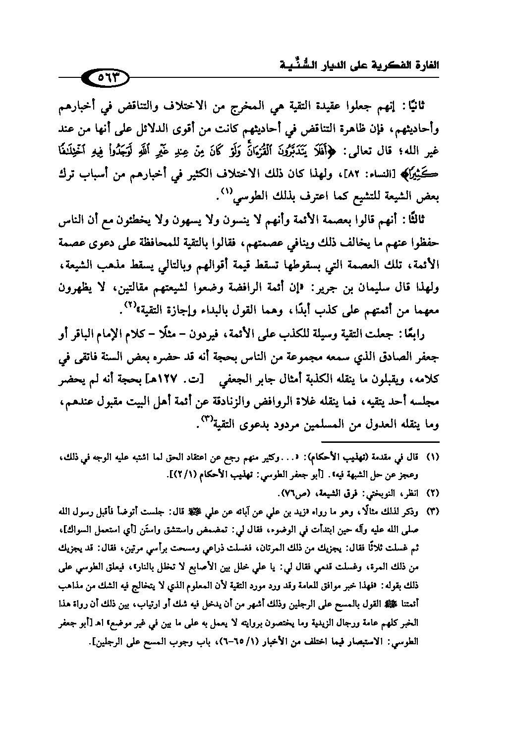 (¬2) قال في مقدمة (تهذيب الأحكام): «... وكثير منهم رجع عن اعتقاد الحق لما اشتبه عليه الوجه في ذلك، وعجز عن حل الشبهة فيه». [أبو جعفر الطوسي: تهذيب الأحكام (1/ 2)].