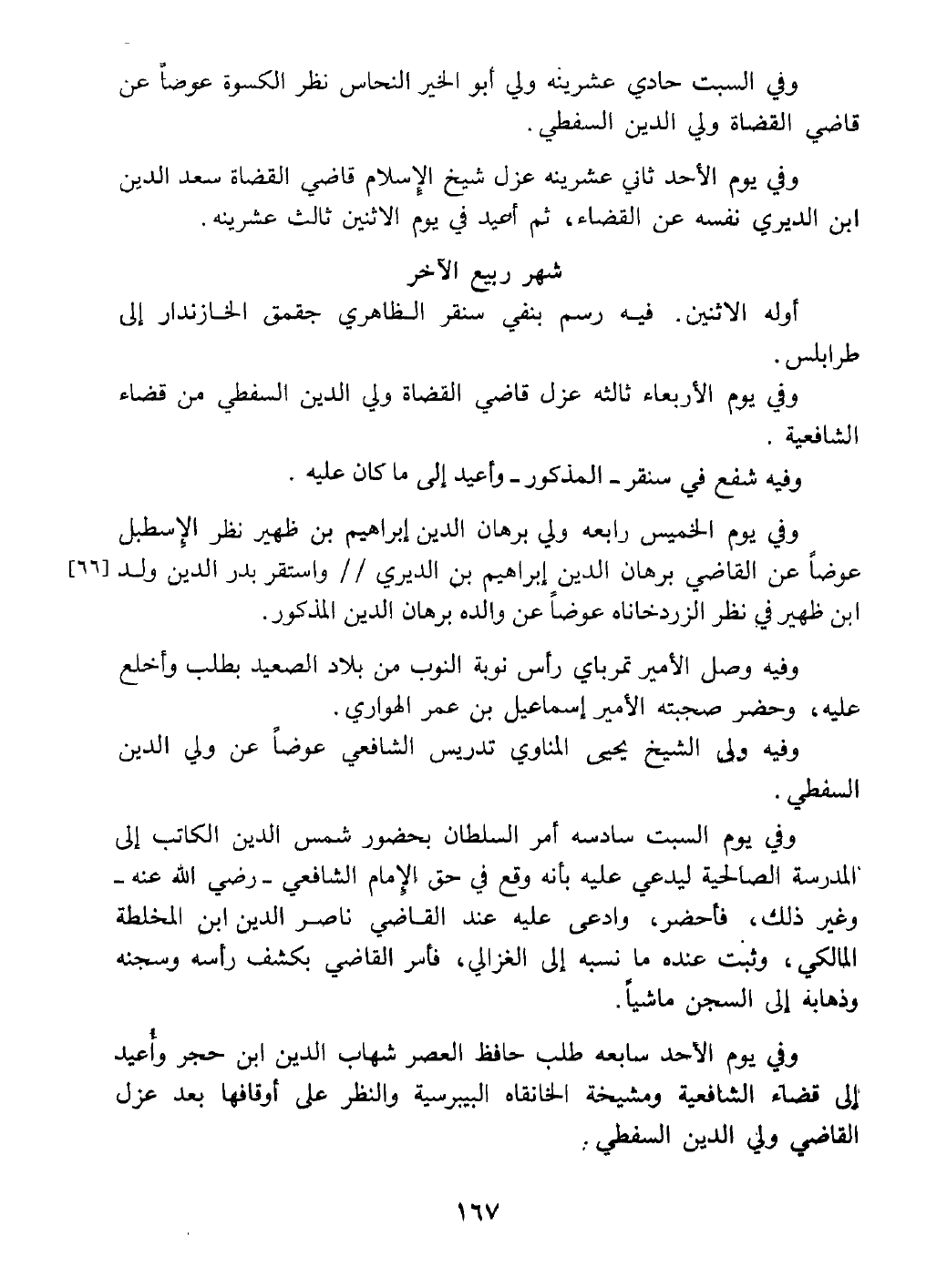 وفي يوم الأحد ثاني عشرينه عزل السعد ابن الدبري نفسه عن قضاء الحنفية ثم أعيد في يوم الاثنين ثالث عشرينه.