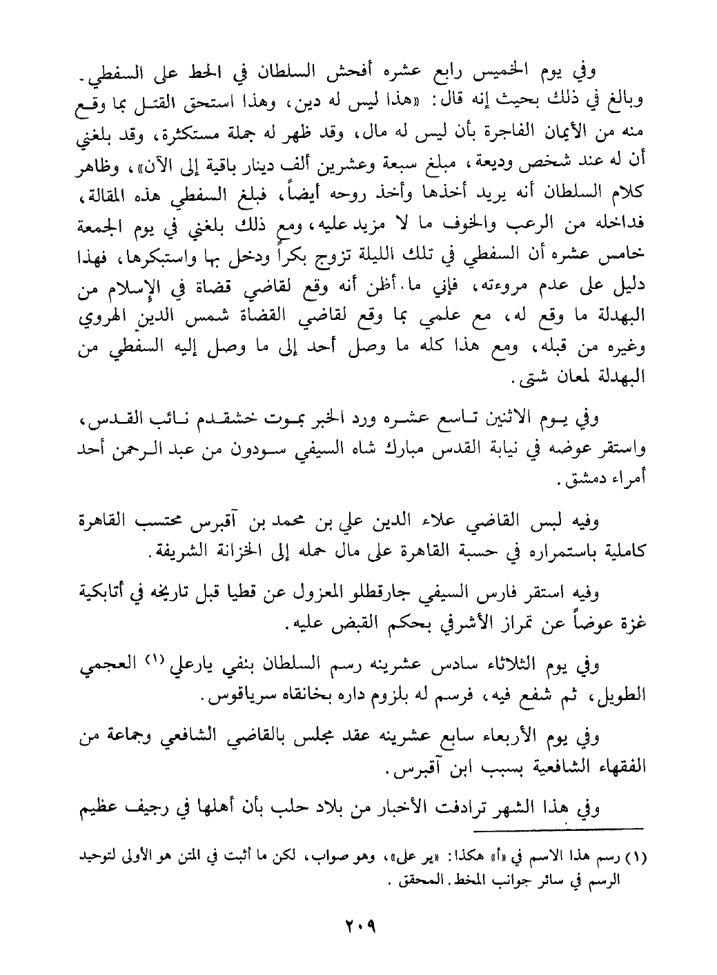وفي يوم الأربعاء سابع عشرينه عقد مجلس بالشافعي وجماعة من الفقهاء الشافعية بسبب ابن اقبرس.