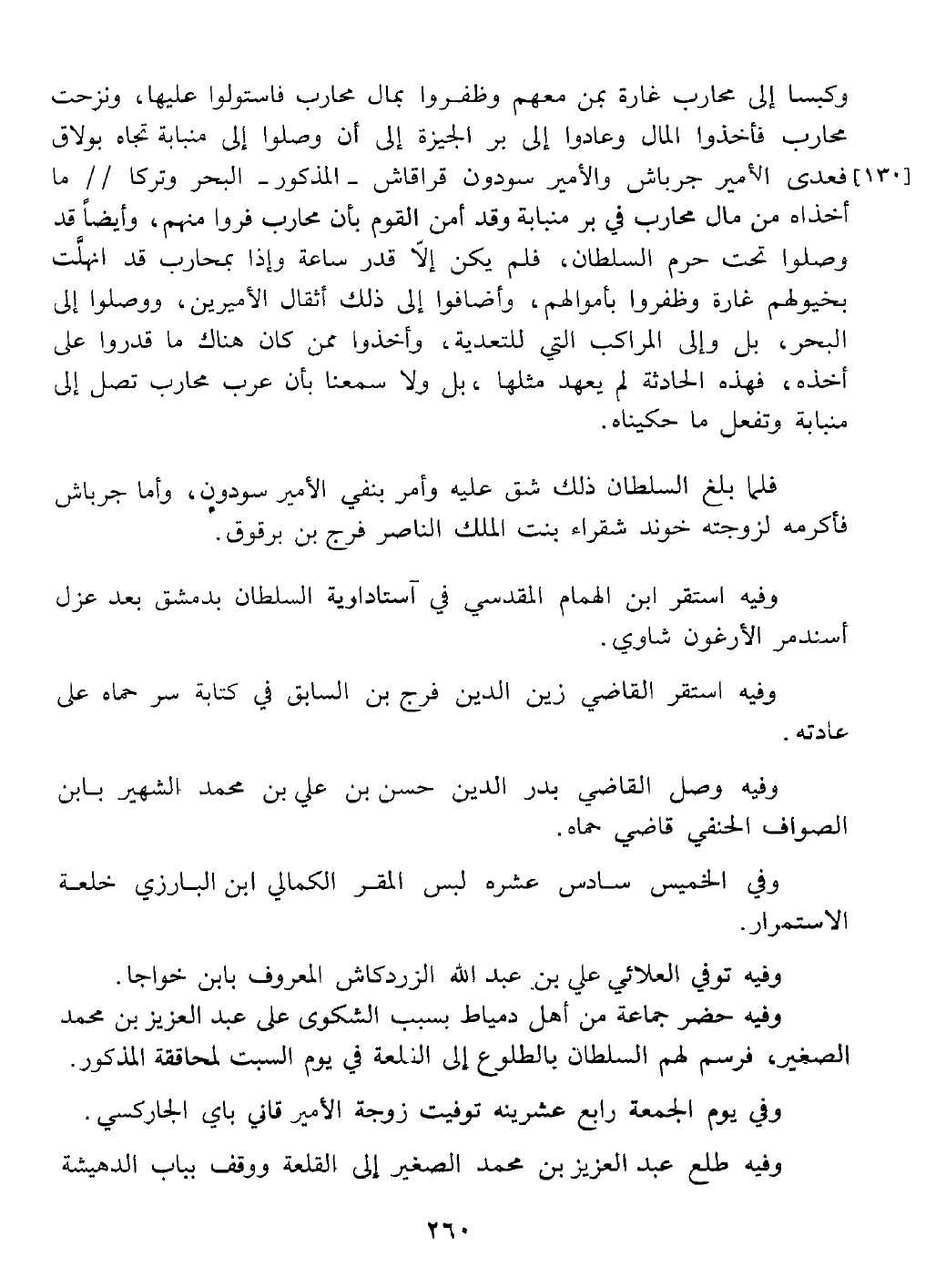 وفيه استقر ابن الهمام المقدسي في استكارية السلطان بدمشق بعد عزل استدمر الاغرون شاوي واستقر القاضي زين الدين فرج ابن السابق في كتابة سر حماة على عادته ووصل البدر حسن بن علي ابن محمد ابن الصواف الحنفي قاضي حماة.