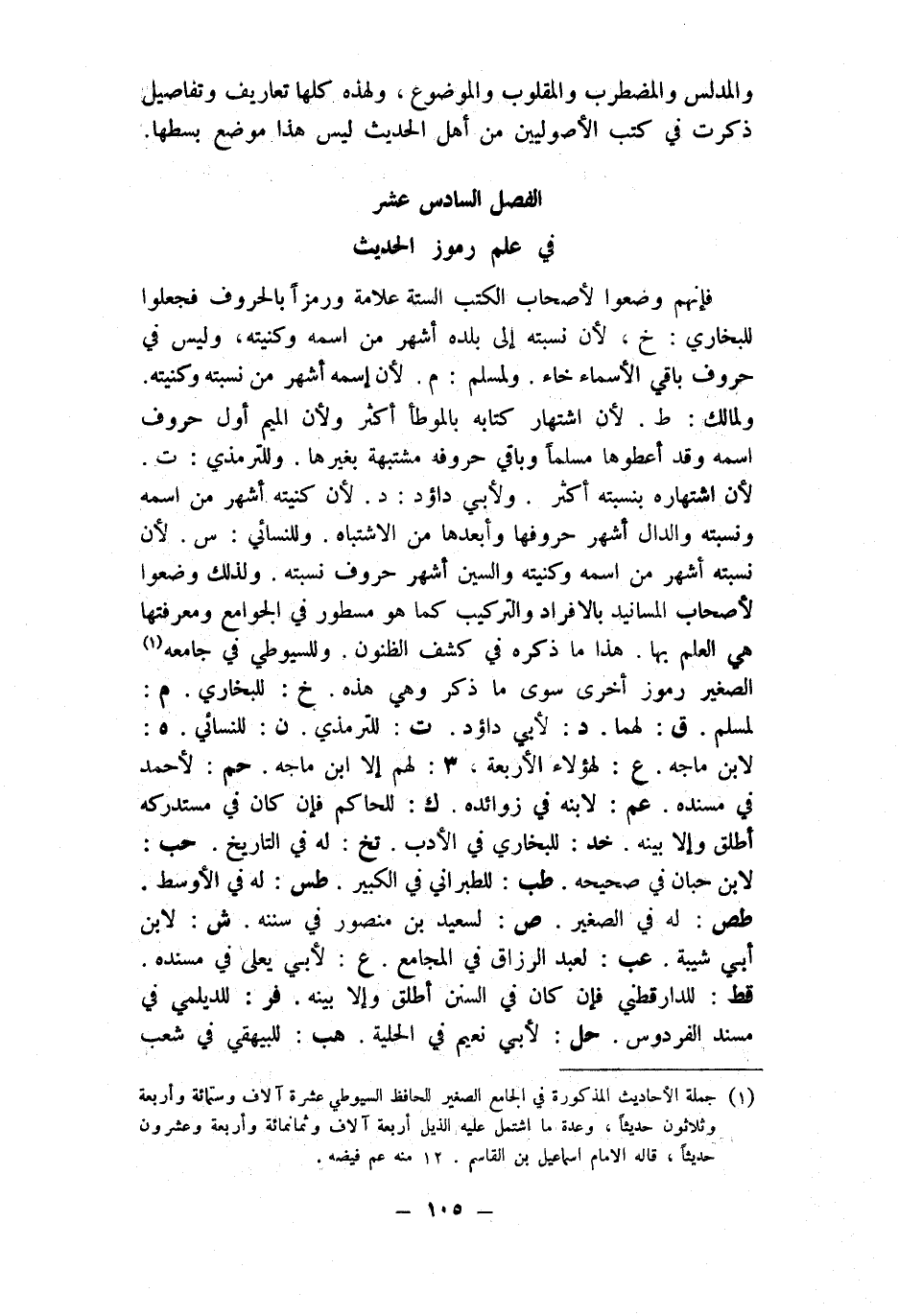 الْفَصْل السَّادِس عشر فِي علم رموز الحَدِيث