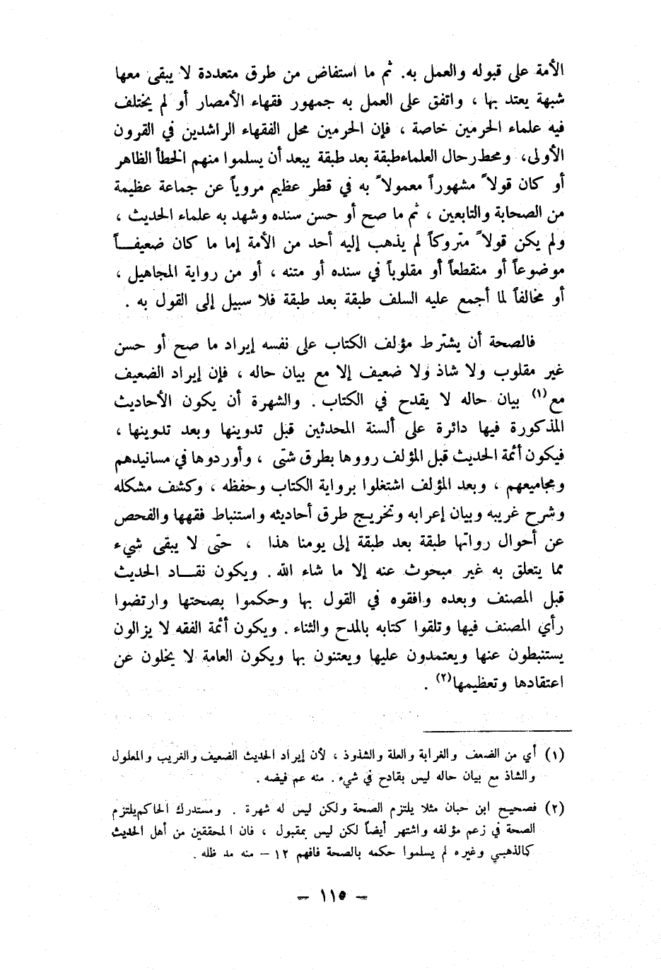 فالصحة أَن يشْتَرط مؤلف الْكتاب على نَفسه إِيرَاد مَا صَحَّ أَو حسن غير مقلوب وَلَا شَاذ وَلَا ضَعِيف إِلَّا مَعَ بَيَان حَاله فَإِن إِيرَاد الضَّعِيف مَعَ بَيَان حَاله لَا يقْدَح فِي الْكتاب والشهرة أَن يكون الْأَحَادِيث الْمَذْكُورَة فِيهَا دَائِرَة على أَلْسِنَة الْمُحدثين قبل تدوينها وَبعد تدوينها فَيكون أَئِمَّة الحَدِيث قبل الْمُؤلف رووها بطرق شَتَّى وأوردوها فِي مسانيدهم ومجاميعهم وَبعد الْمُؤلف اشتغلوا بِرِوَايَة الْكتاب وَحفظه وكشف مشكله وَشرح غَرِيبه وَبَيَان إعرابه وَتَخْرِيج طرق أَحَادِيثه واستنباط فقهها والفحص عَن أَحْوَال رواتها طبقَة بعد طبقَة إِلَى يَوْمنَا هَذَا حَتَّى لَا يبْقى شَيْء مِمَّا يتَعَلَّق بِهِ غير مبحوث عَنهُ إِلَّا مَا شَاءَ الله وَيكون نقاد الحَدِيث قبل المُصَنّف وَبعده وافقوه فِي القَوْل بهَا وحكموا بِصِحَّتِهَا وارتضوا رَأْي المُصَنّف فِيهَا وتلقوا كِتَابه بالمدح وَالثنَاء وَيكون أَئِمَّة الْفِقْه لَا يزالون يستنبطون عَنْهَا ويعتمدون عَلَيْهَا ويعتنون بهَا وَيكون الْعَامَّة لَا يخلون عَن اعتقادها وتعظيمها