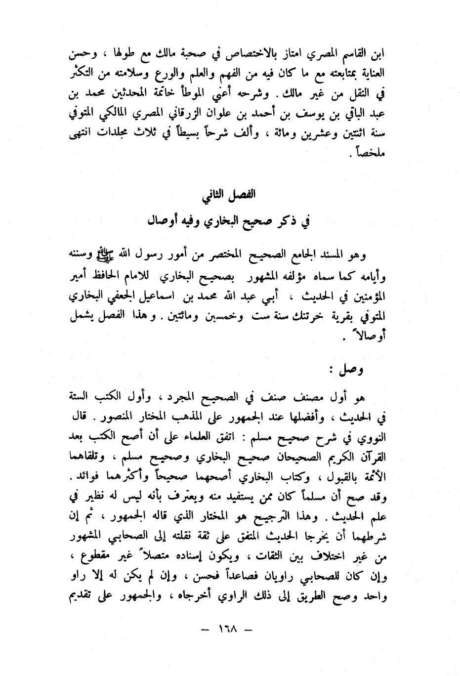 وَهُوَ الْمسند الْجَامِع الصَّحِيح الْمُخْتَصر من أُمُور رَسُول الله صلى الله عَلَيْهِ وَسلم وسننه وأيامه كَمَا سَمَّاهُ مُؤَلفه الْمَشْهُور بِصَحِيح البُخَارِيّ للْإِمَام الْحَافِظ أَمِير الْمُؤمنِينَ فِي الحَدِيث أبي عبد الله مُحَمَّد بن اسماعيل الْجعْفِيّ البُخَارِيّ المتوفي بقرية خرتنك سنة سِتّ وَخمسين وَمِائَتَيْنِ وَهَذَا الْفَصْل يَشْمَل أوصالا وصل