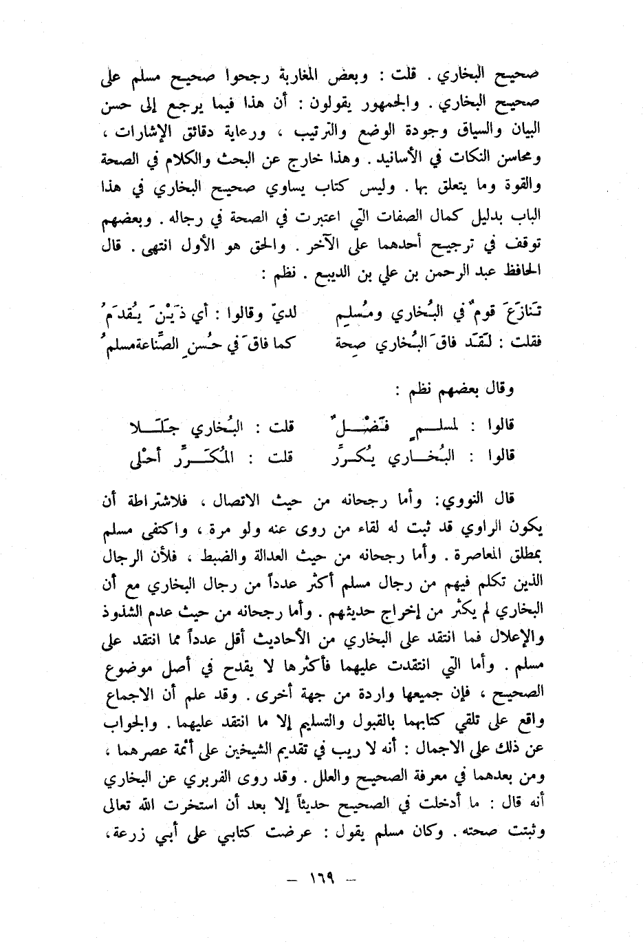 (تنَازع قوم فِي البُخَارِيّ وَمُسلم ... لدي وَقَالُوا أَي ذين يقدم)