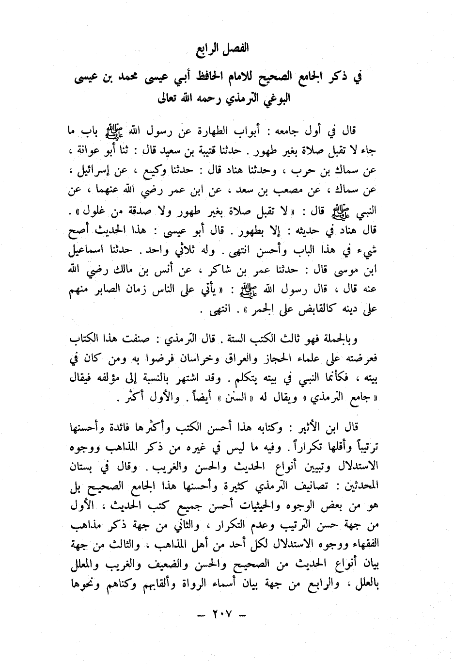 الْفَصْل الرَّابِع فِي ذكر الْجَامِع الصَّحِيح للْإِمَام الْحَافِظ أبي عِيسَى مُحَمَّد بن عِيسَى البوغي التِّرْمِذِيّ رَحمَه الله تَعَالَى
