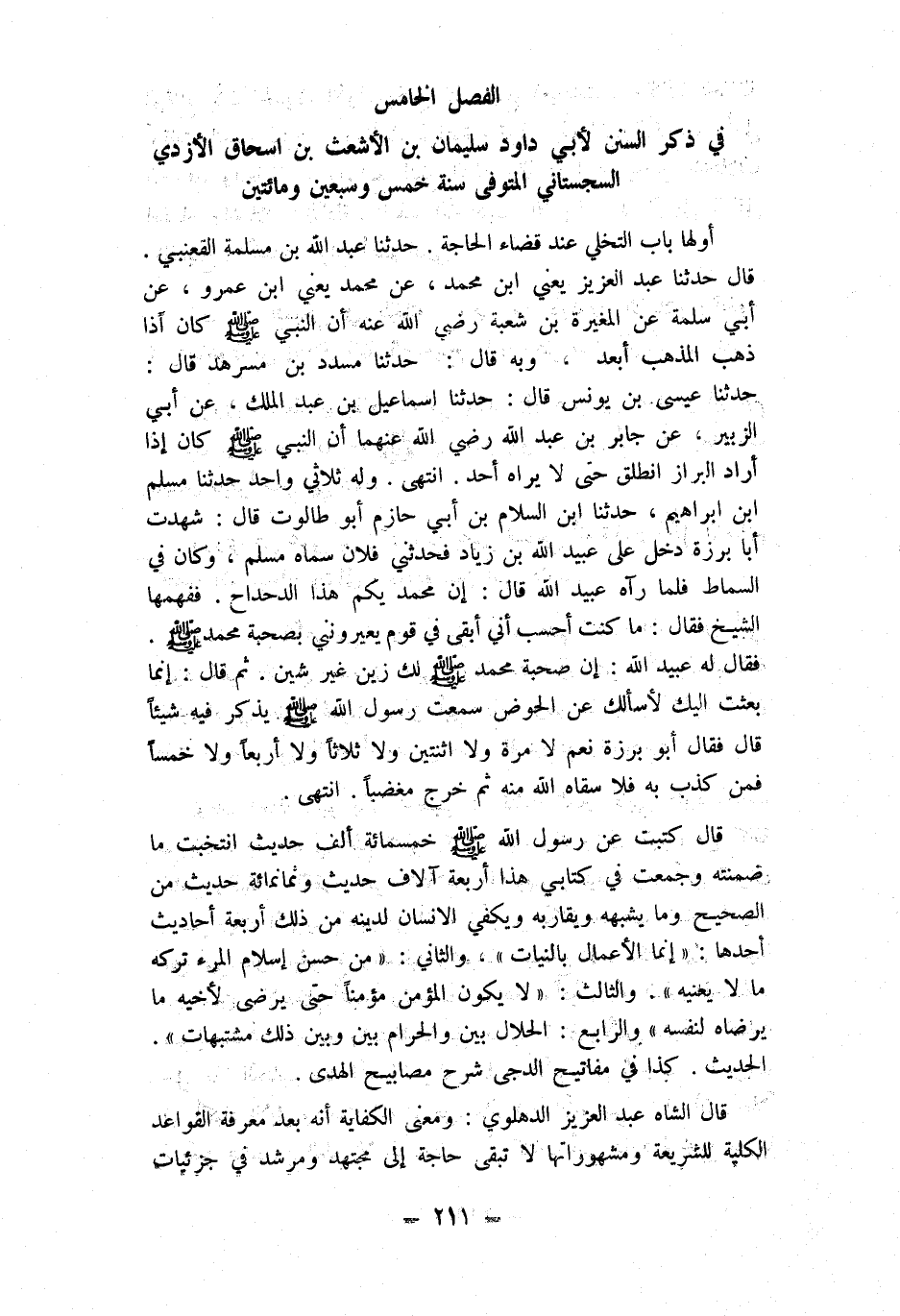 الْفَصْل الْخَامِس فِي ذكر السّنَن لأبي دَاوُد سُلَيْمَان بن الْأَشْعَث بن اسحاق الْأَزْدِيّ السجسْتانِي الْمُتَوفَّى سنة خمس وَسبعين وَمِائَتَيْنِ