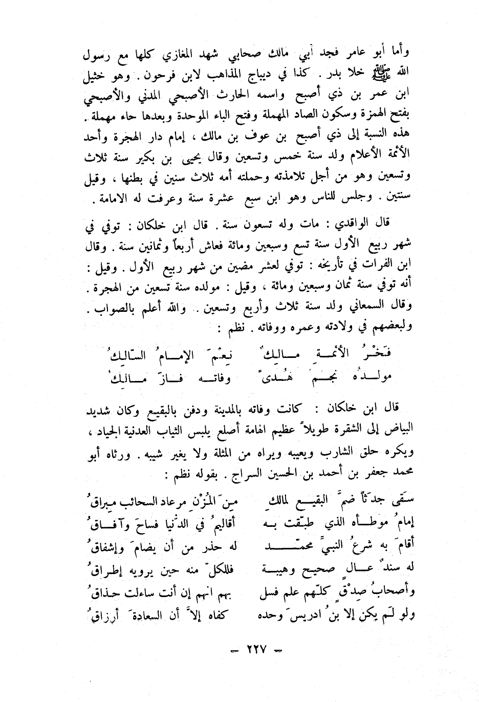 (فَخر الْأَئِمَّة مَالك ... نعم الإِمَام السالك)