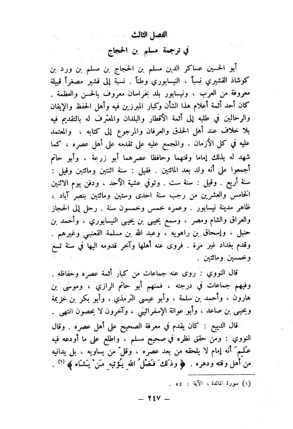 الْفَصْل الثَّالِث فِي تَرْجَمَة مُسلم بن الْحجَّاج