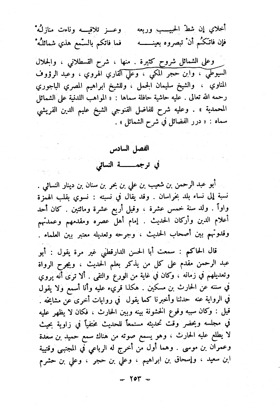 الْفَصْل السَّادِس فِي تَرْجَمَة النَّسَائِيّ ...
