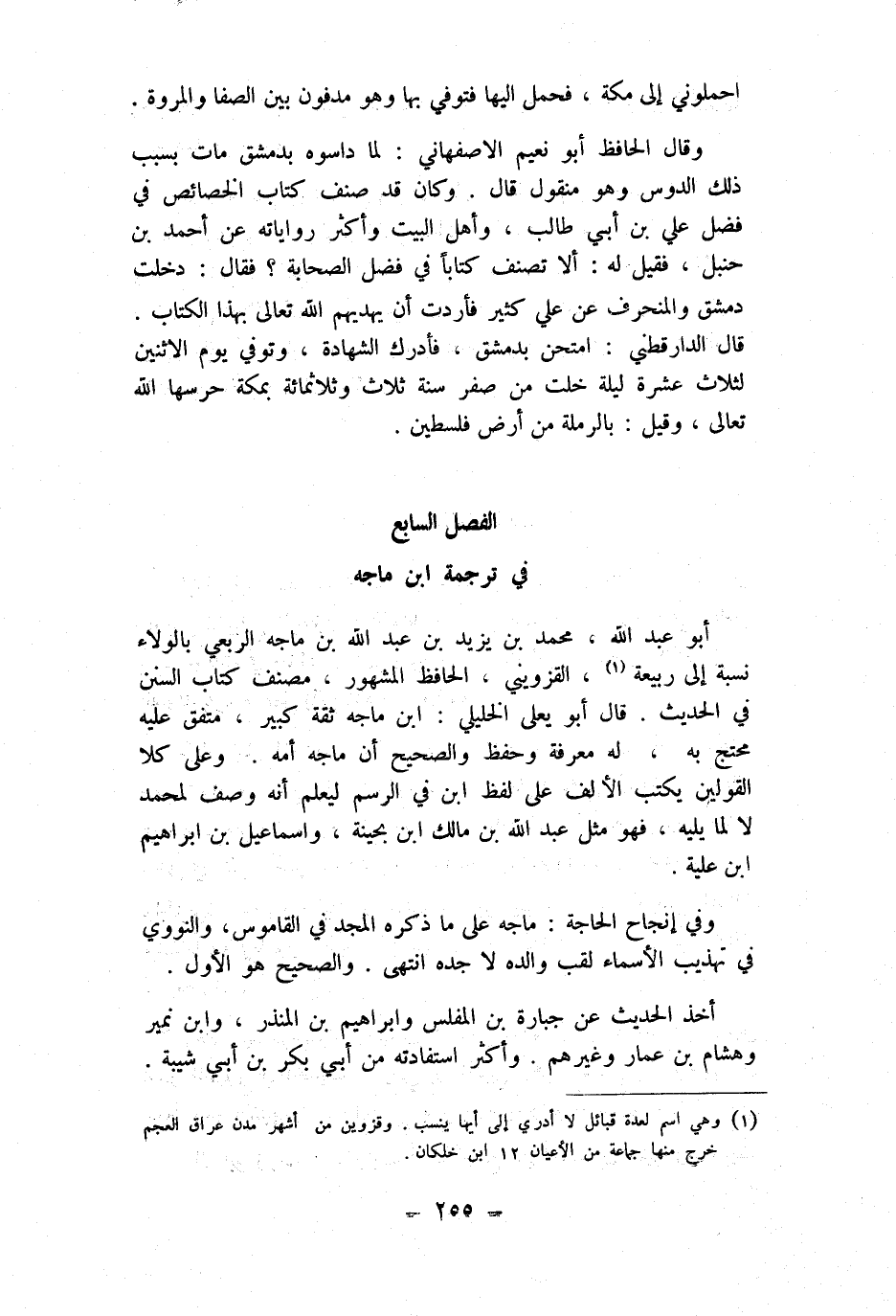 الْفَصْل السَّابِع فِي تَرْجَمَة ابْن مَاجَه