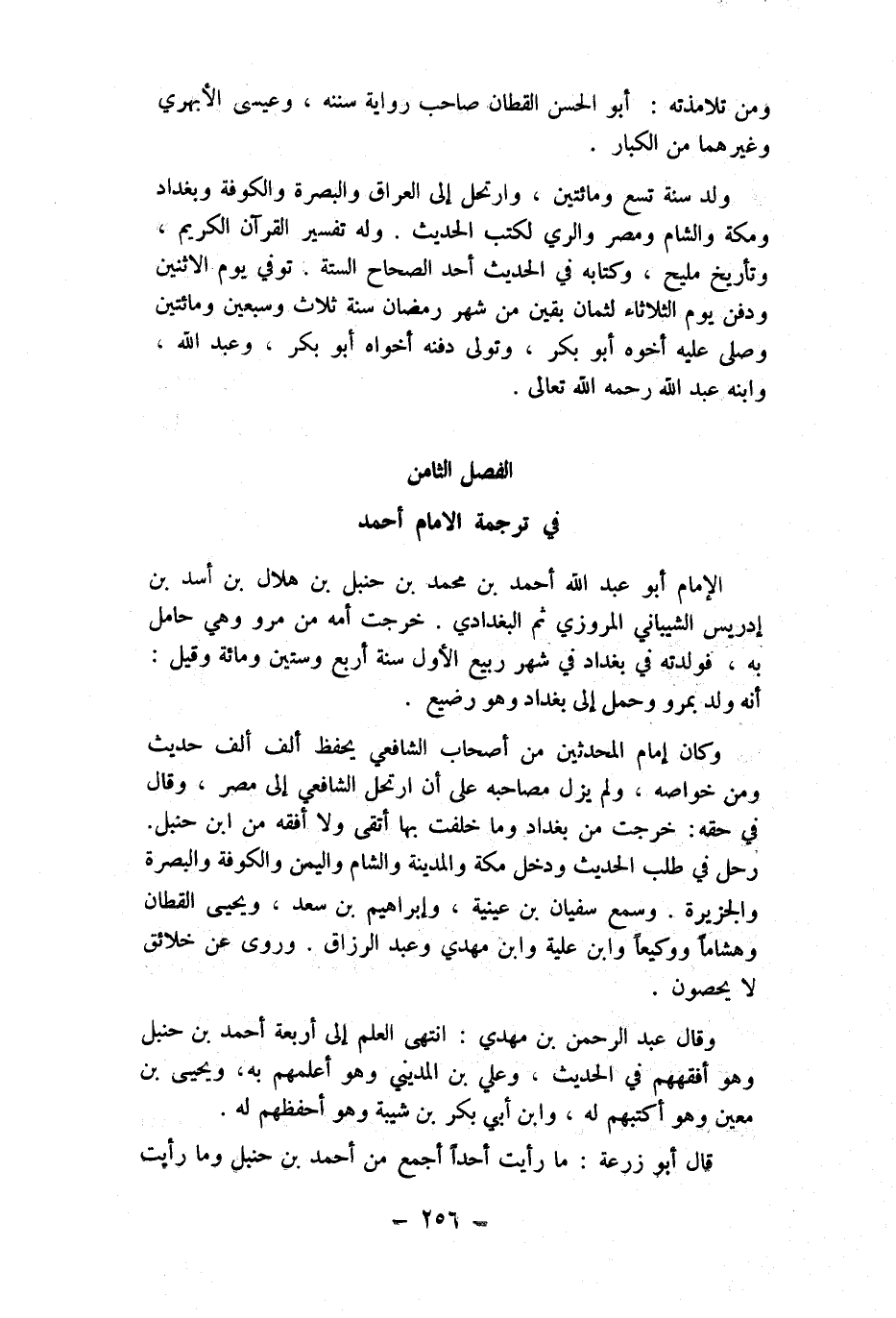 الْفَصْل الثَّامِن فِي تَرْجَمَة الإِمَام أَحْمد