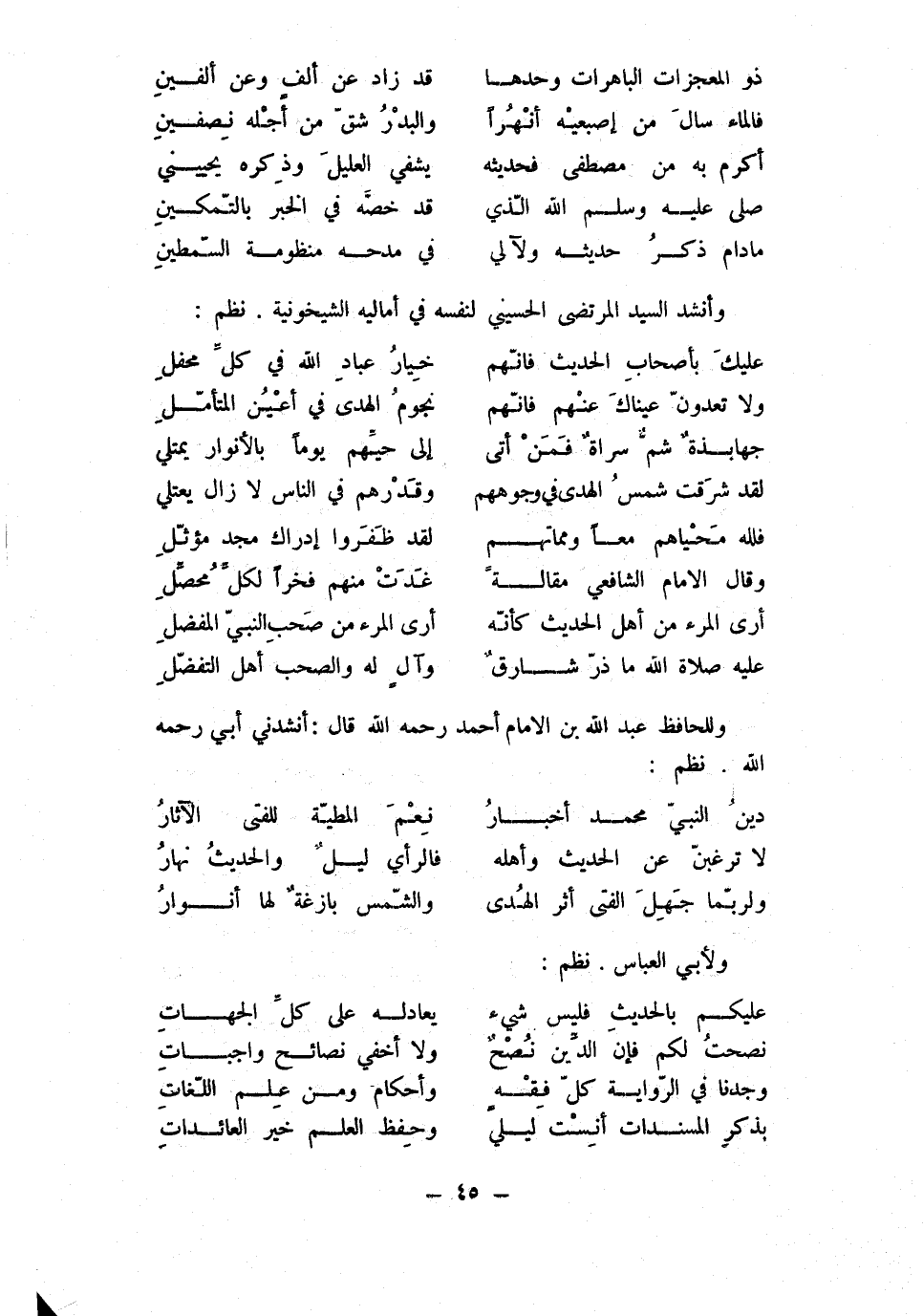 (عَلَيْك بأصحاب الحَدِيث فَإِنَّهُم ... خِيَار عباد الله فِي كل محفل)