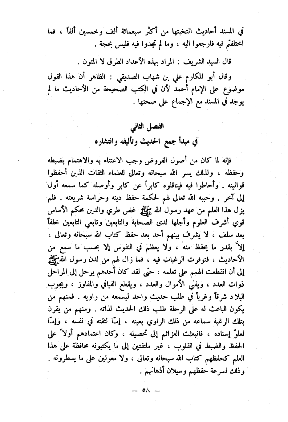 فَإِنَّهُ لما كَانَ من أصُول الْفُرُوض وَجب الاعتناء بِهِ والاهتمام بضبطه وَحفظه ولذك يسر الله سُبْحَانَهُ وَتَعَالَى للْعُلَمَاء الثِّقَات الَّذين أحفظوا قوانينه وَأَحَاطُوا فِيهِ فيناقلوه كَابِرًا عَن كَابر وأوصله كَمَا سَمعه أول إِلَى آخر وحببه الله تَعَالَى لَهُم لحكمة حفظ دينه وحراسة شَرِيعَته فَلم يزل هَذَا الْعلم من عهد رَسُول الله صلى الله عَلَيْهِ وَسلم غض طري وَالدّين مُحكم الأساس قوي أشرف الْعُلُوم وأجلها لَدَى الصَّحَابَة وَالتَّابِعِينَ وتابعي التَّابِعين خلفا بعد سلف لَا يشرف بَينهم أحد بعد حفظ كتاب الله سُبْحَانَهُ وَتَعَالَى إِلَّا بِقدر مَا يحفظ مِنْهُ وَلَا يعظم فِي النُّفُوس إِلَّا بِحَسب مَا سمع من الْأَحَادِيث فتوفرت الرغبات فِيهِ فَمَا زَالَ لَهُم من لدن رَسُول الله صلى الله عَلَيْهِ وَسلم إِلَى أَن انْقَطَعت الهمم على تعلمه حَتَّى لقد كَانَ أحدهم يرحل إِلَى المراحل ذَوَات الْعدَد ويفني الْأَمْوَال وَالْعدَد وَيقطع الفيافي والمفاوز ويجوب الْبِلَاد شرقا وغربا فِي طلب حَدِيث وَاحِد ليسمعه من راوية فَمنهمْ من يكون الْبَاعِث لَهُ على الرحلة طلب ذَلِك الحَدِيث لذاته وَمِنْهُم من يقرن بِتِلْكَ الرَّغْبَة سَمَاعه من ذَلِك الرَّاوِي بِعَيْنِه إِمَّا لِثِقَتِهِ فِي نَفسه وَإِمَّا لعلو إِسْنَاده فانبعثت العزائم إِلَى تَحْصِيله وَكَانَ اعتمادهم أَولا على الْحِفْظ والضبط فِي الْقُلُوب غير ملتفتين إِلَى مَا يكتبونه مُحَافظَة على هَذَا الْعلم كحفظهم كتاب الله سُبْحَانَهُ وَتَعَالَى وَلَا معولين على مَا يسطرونه وَذَلِكَ لسرعة حفظهم وسيلان أذهانهم