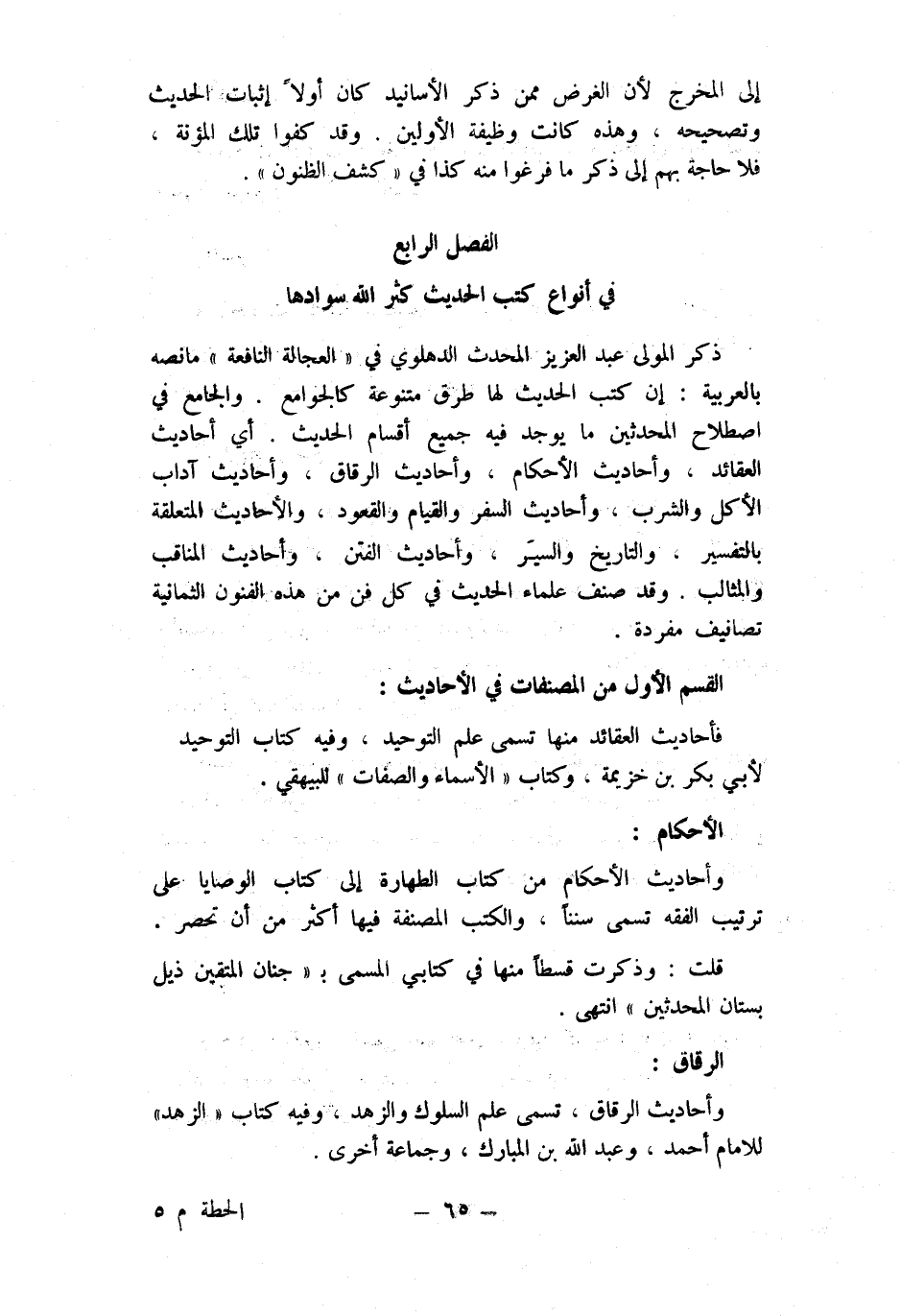 الْفَصْل الرَّابِع فِي أَنْوَاع كتب الحَدِيث كثر الله سوادها