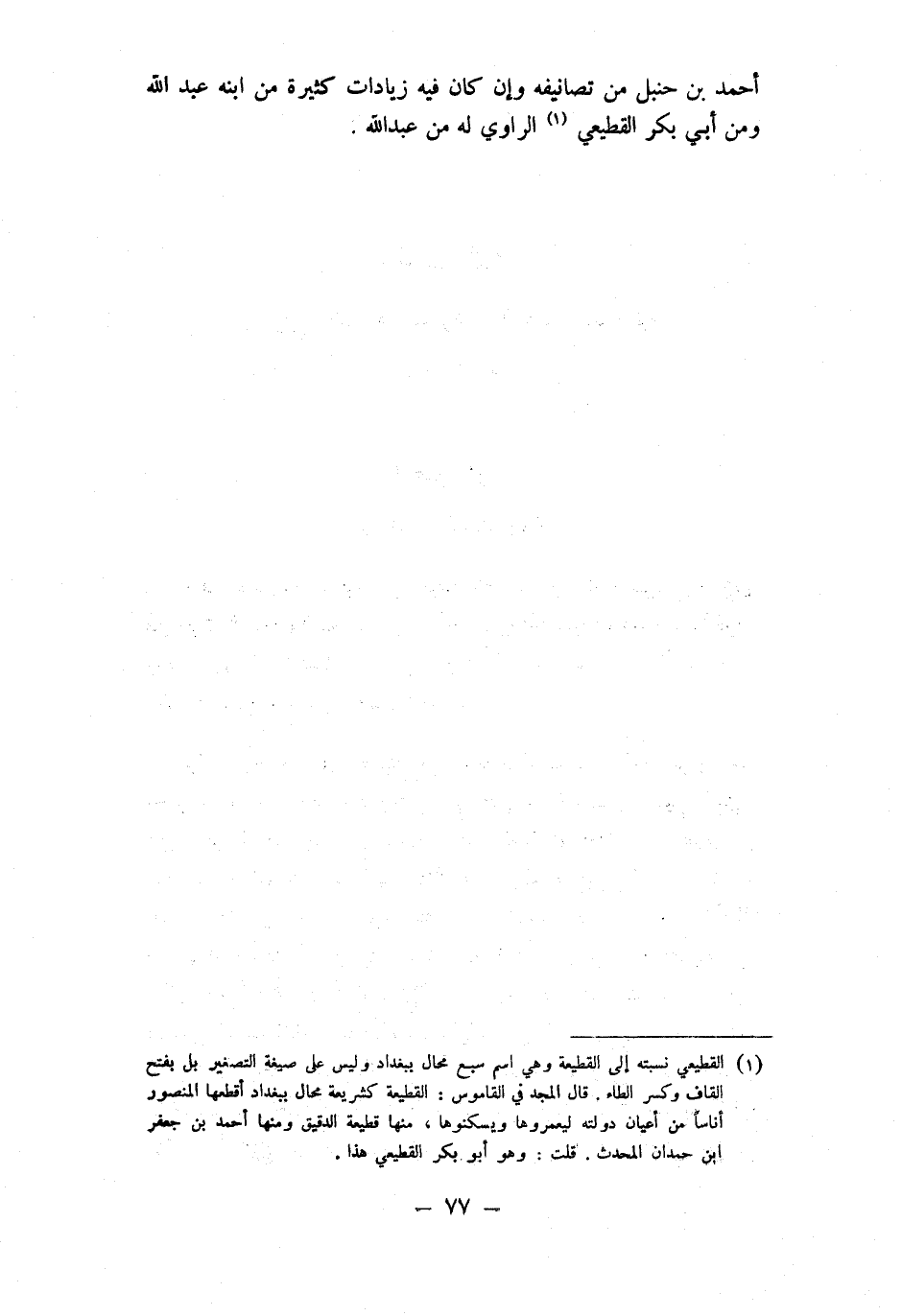 أَحْمد بن حَنْبَل من تصانيفه وَإِن كَانَ فِيهِ زيادات كَثِيرَة من ابْنه عبد الله وَمن أبي بكر الْقطيعِي الرَّاوِي لَهُ من عبد الله