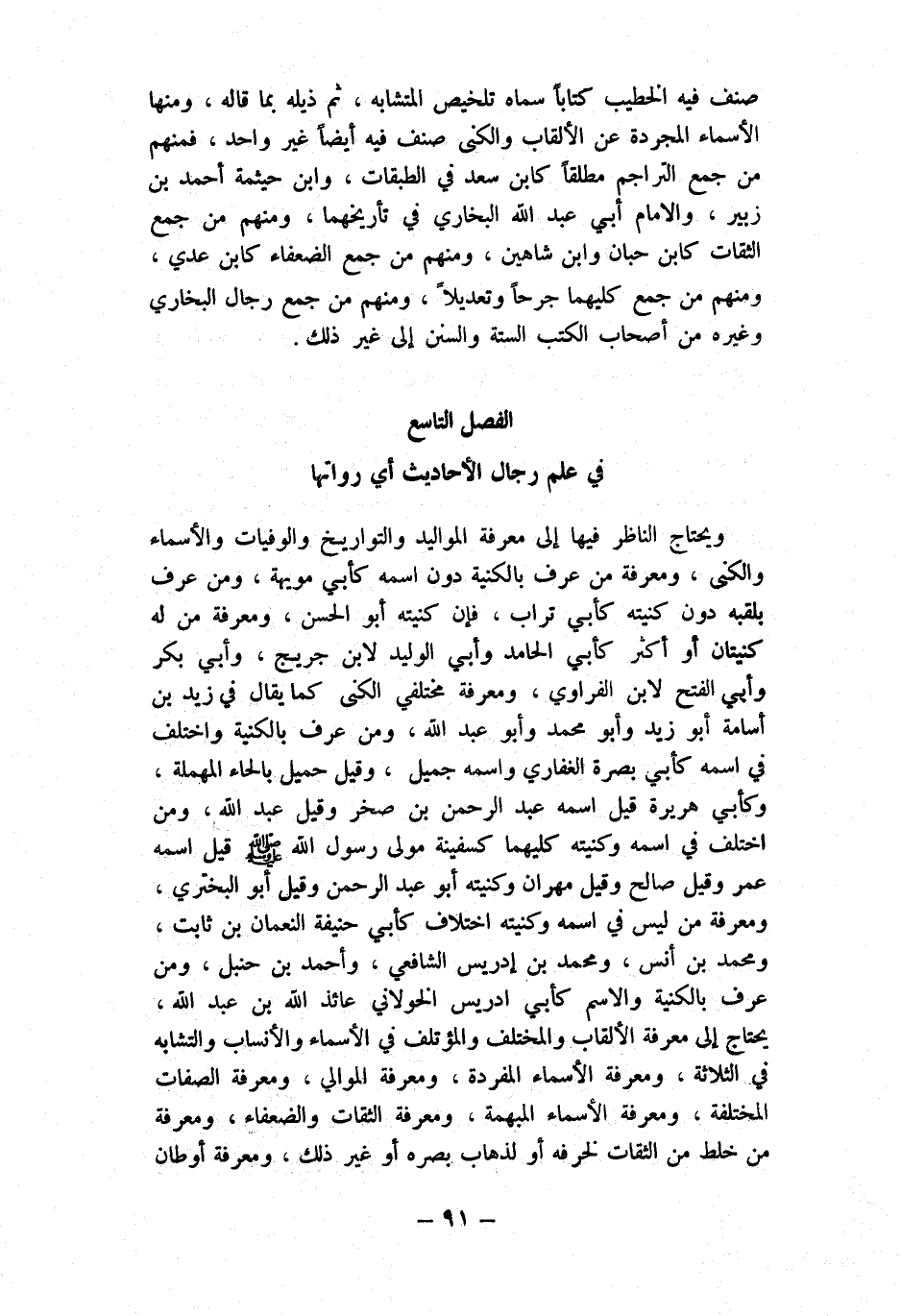 الْفَصْل التَّاسِع فِي علم رجال الْأَحَادِيث أَي رواتها